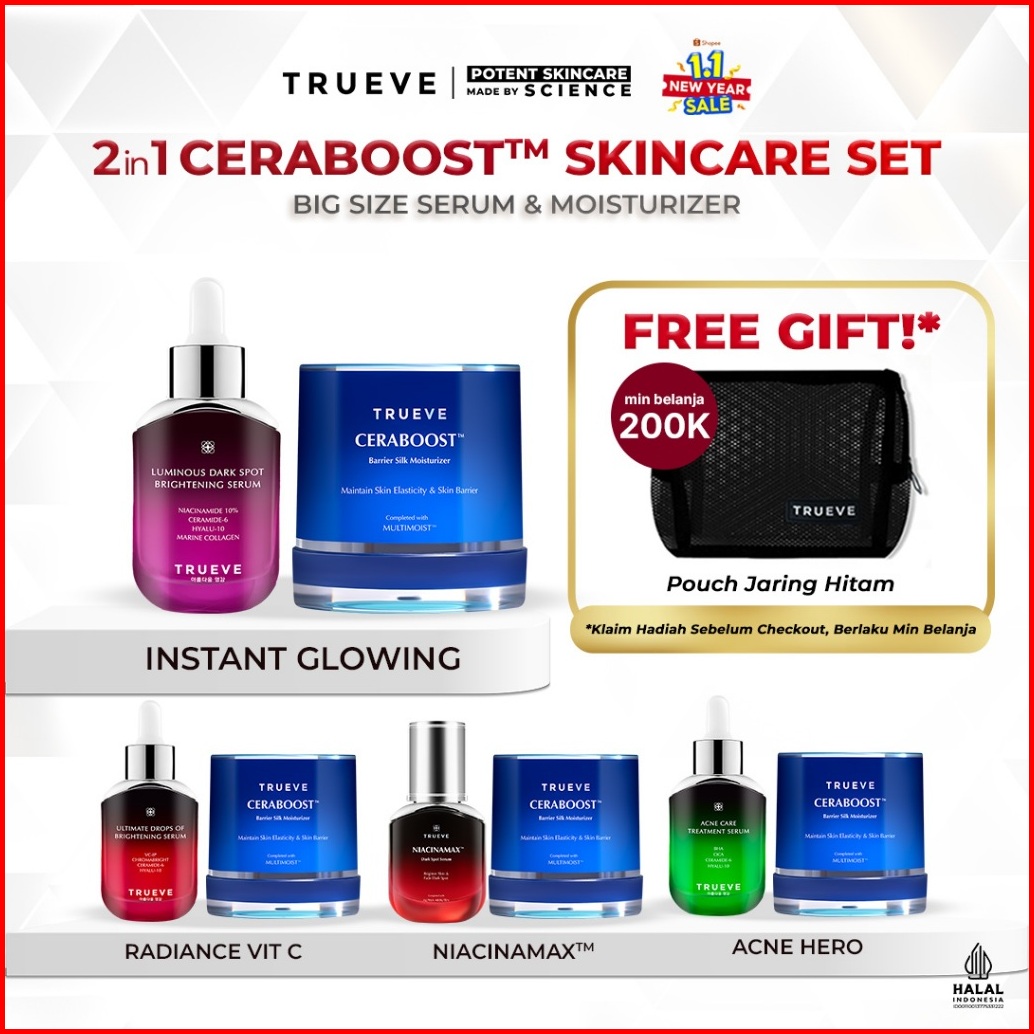 Paket 2 Pcs Trueve Ceraboost Moisturizer Gel 30g Serum 30ml For All Skin Concern Luminous Dark Spot Ultimate Drops Acne