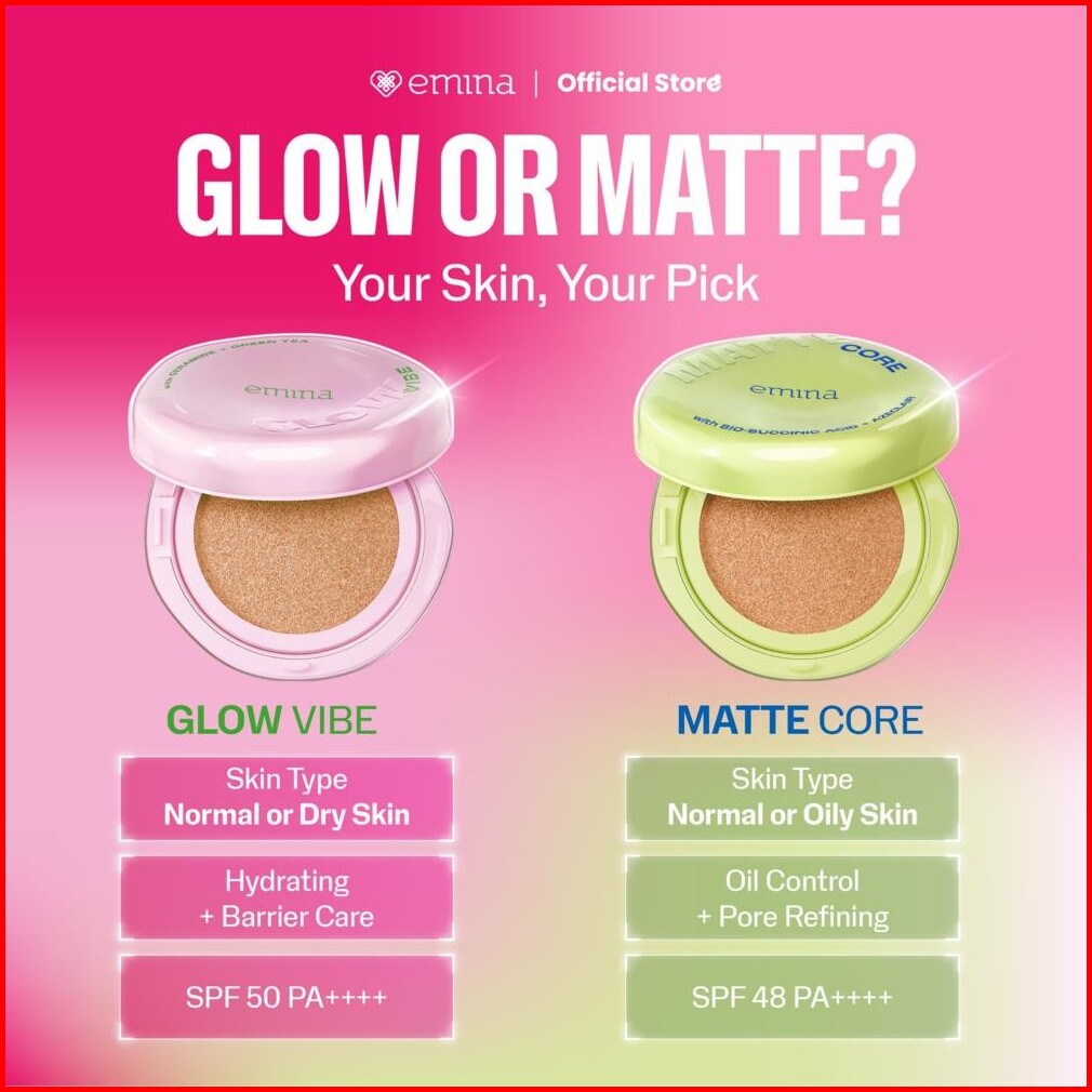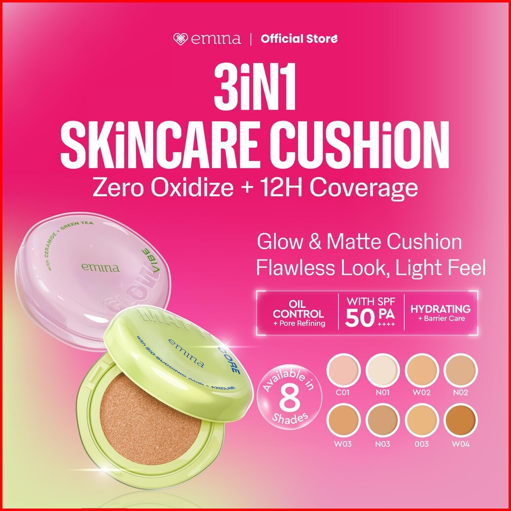 New Emina Glow Matte 3in1 Skincare Cushion Spf 50 Pa 13 G Flawless Lightweight Make Up Foundation Glowing Skin Transferp