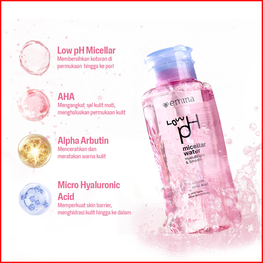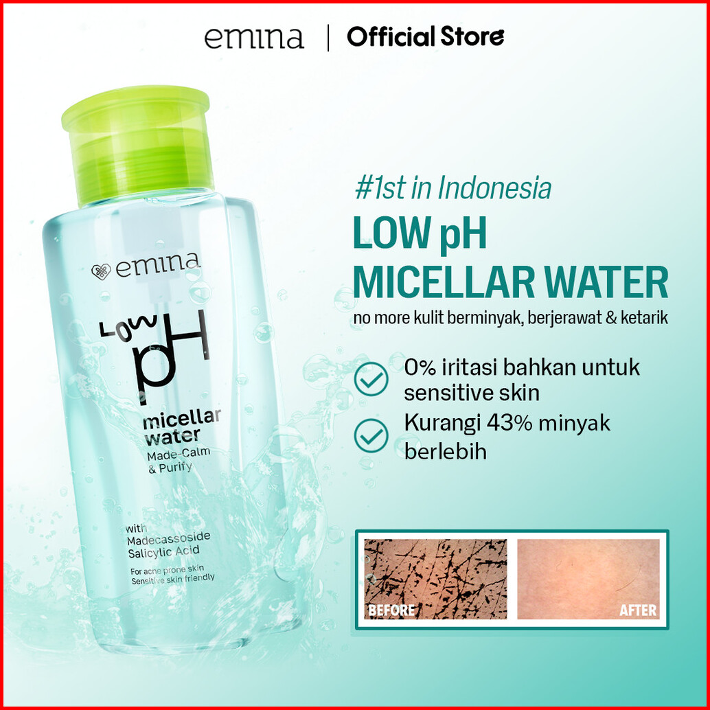 Emina Low Ph Micellar Water Untuk Kulit Berminyak Dan Berjerawat Sensitif 125ml 300ml Salicylic Acid Pembersih Wajah Gen
