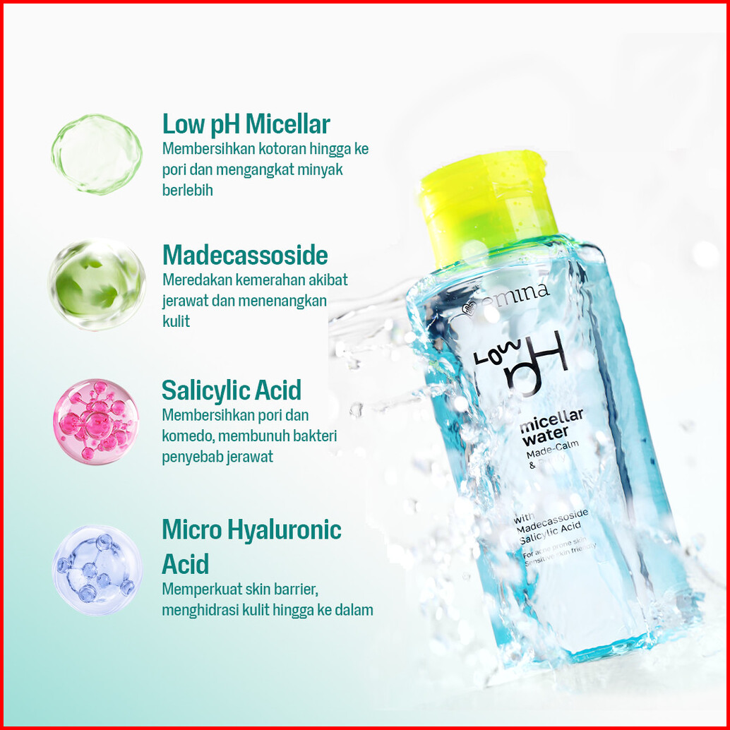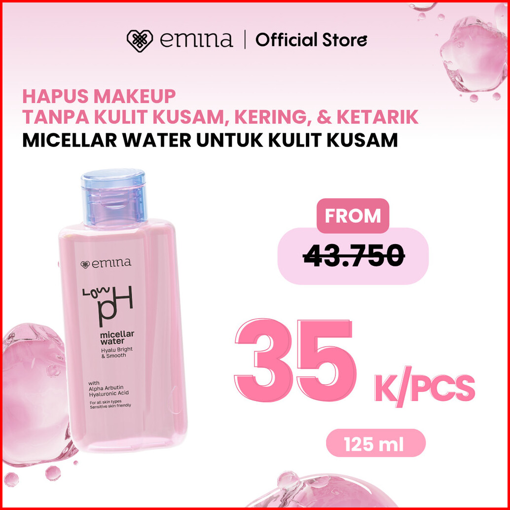 Emina Low Ph Micellar Water Complete Series - Kering Dan Kusam Berminyak Dan Berjerawat Kulit Sensitif 125ml 300ml Pembe