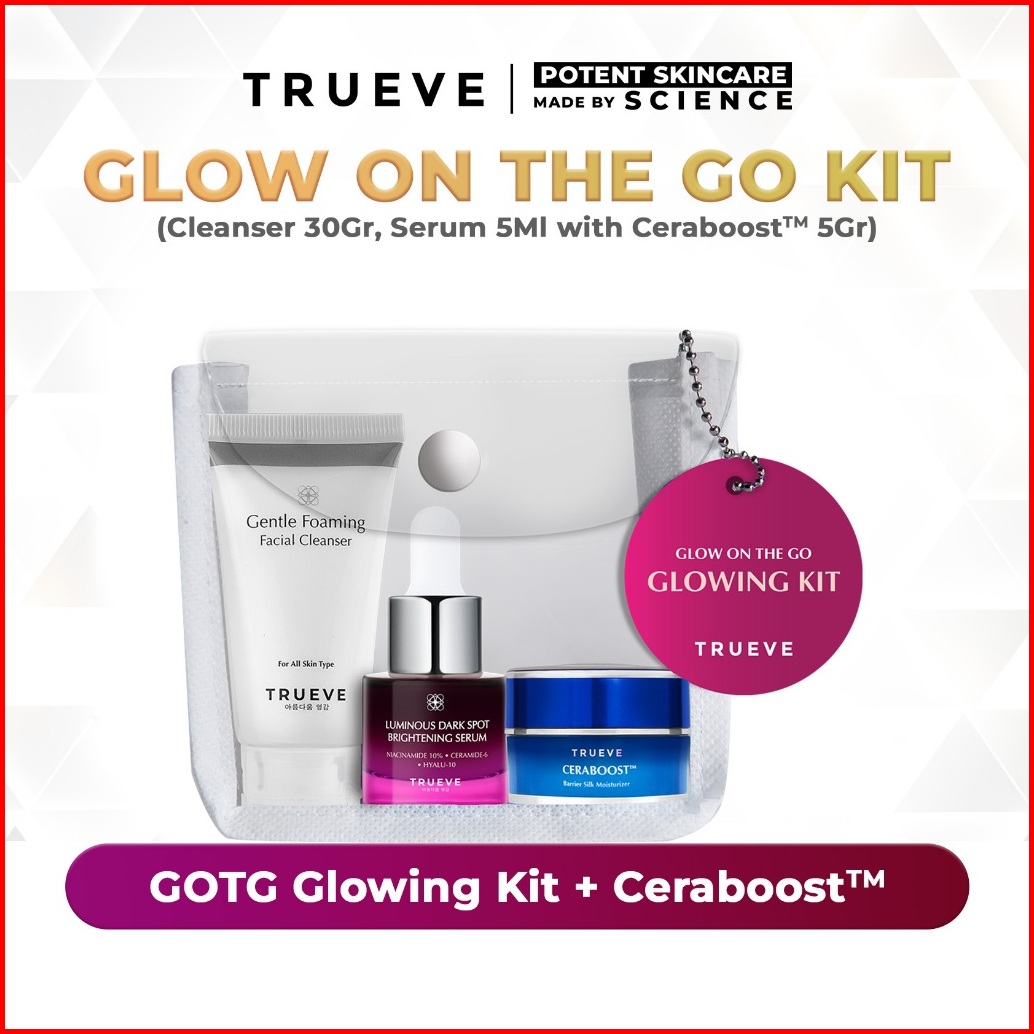 Glow On The Go Kit - Paket Serum Moisturizer Cleanser With Travel Friendly Pouch. Skincare Set For All Skin Concern