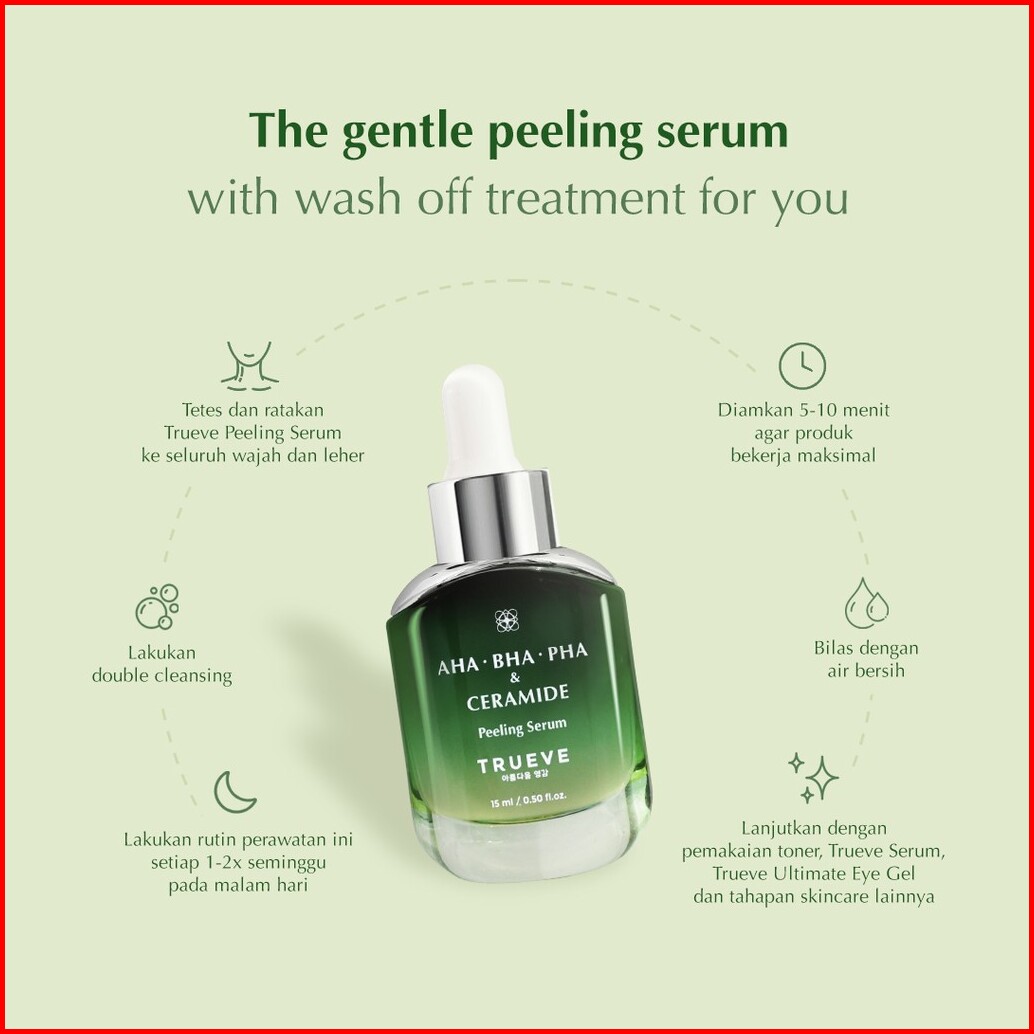 Trueve Peeling Serum 10 Aha 2 Bha 2 Pha Ceramide - Perawatan Wajah Eksfoliasi Wajah Dari Kotoran Komedo Kulit Mati Kotor