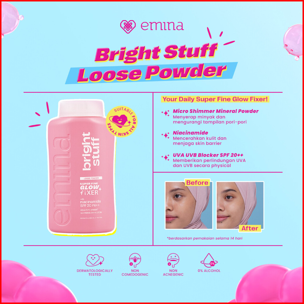 New Emina Bright Stuff Loose Powder 55 G - Bedak Tabur Cerah Hasil Matte Oil Control