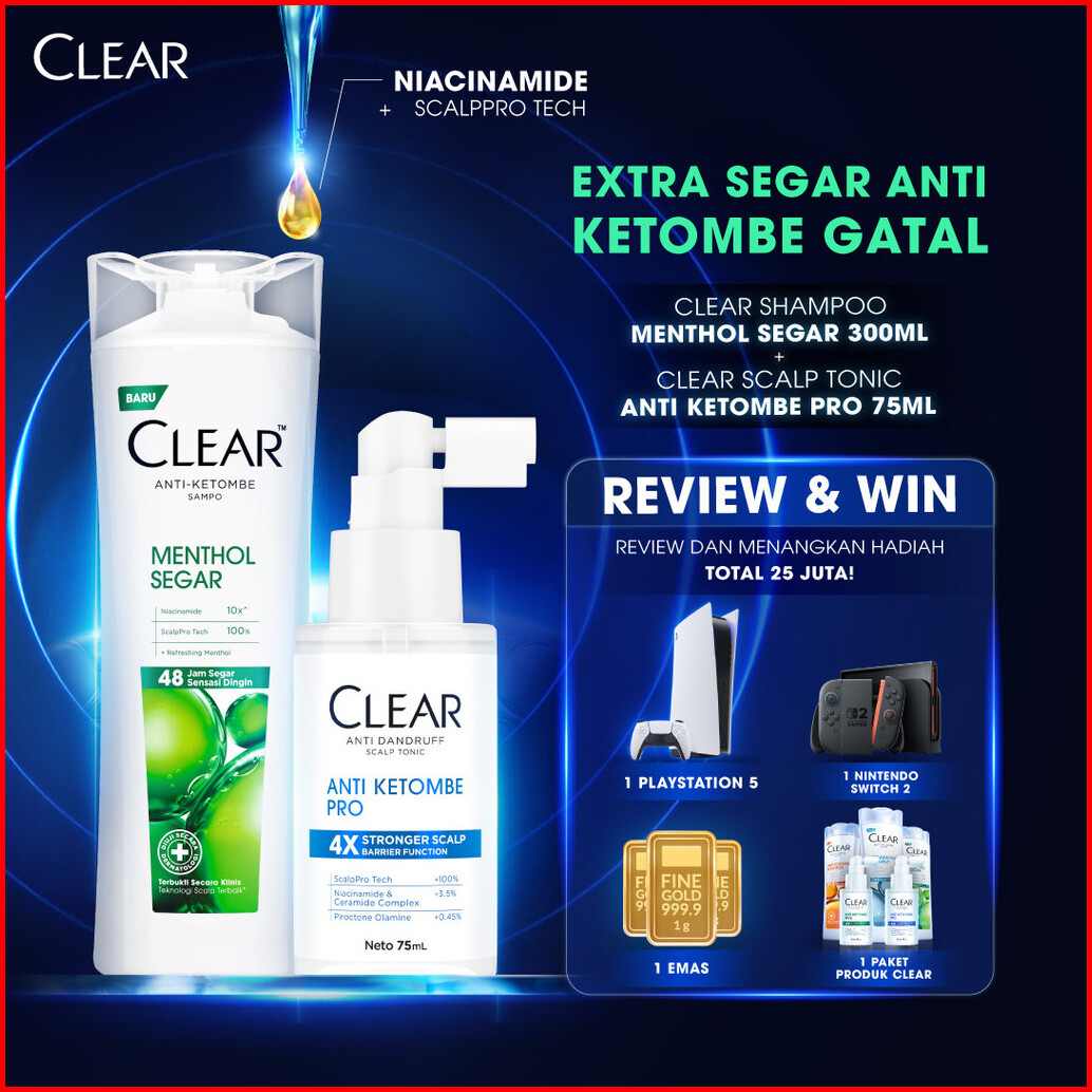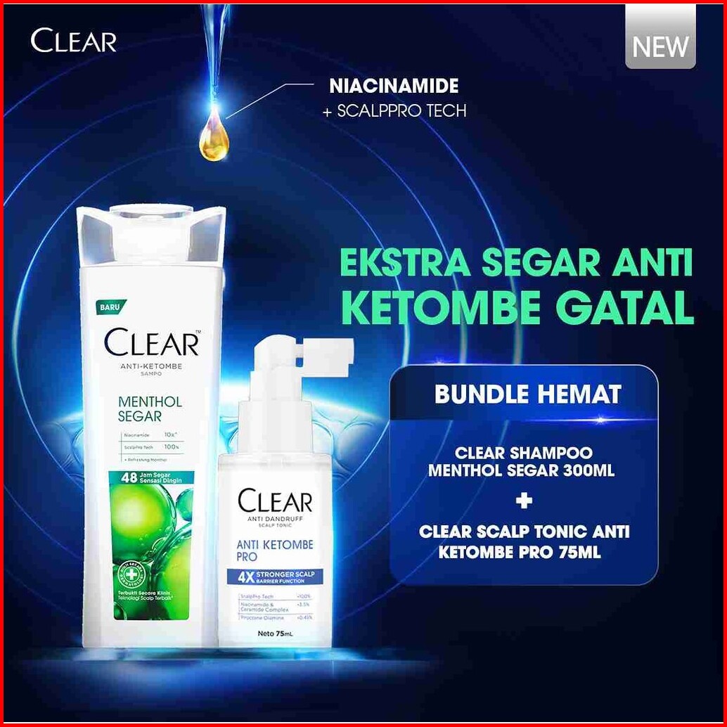 Bundle Hemat Clear Shampoo Menthol Segar Anti Ketombe 300ml Clear Anti Dandruff Scalp Tonic Hair Tonic Anti Ketombe Pro