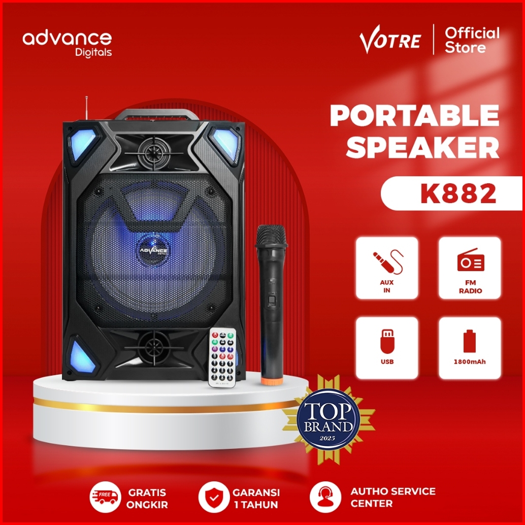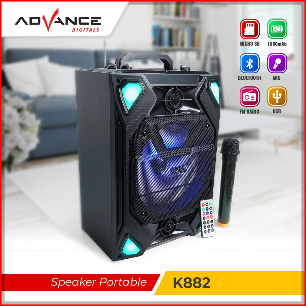 Advance Bluetooth Speaker K882 Speaker Dengan 8 Music Box Portable Sub Woofer Karaoke Usb Radio