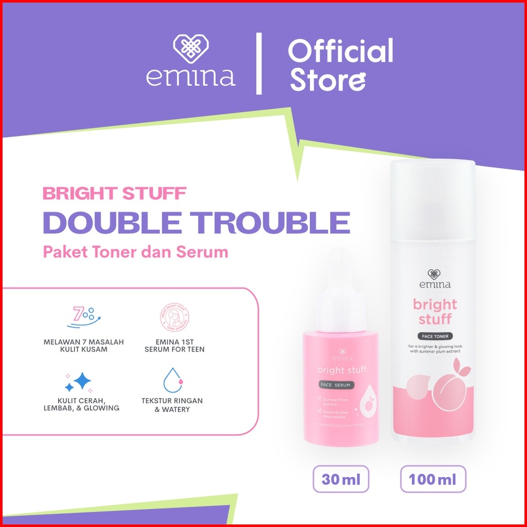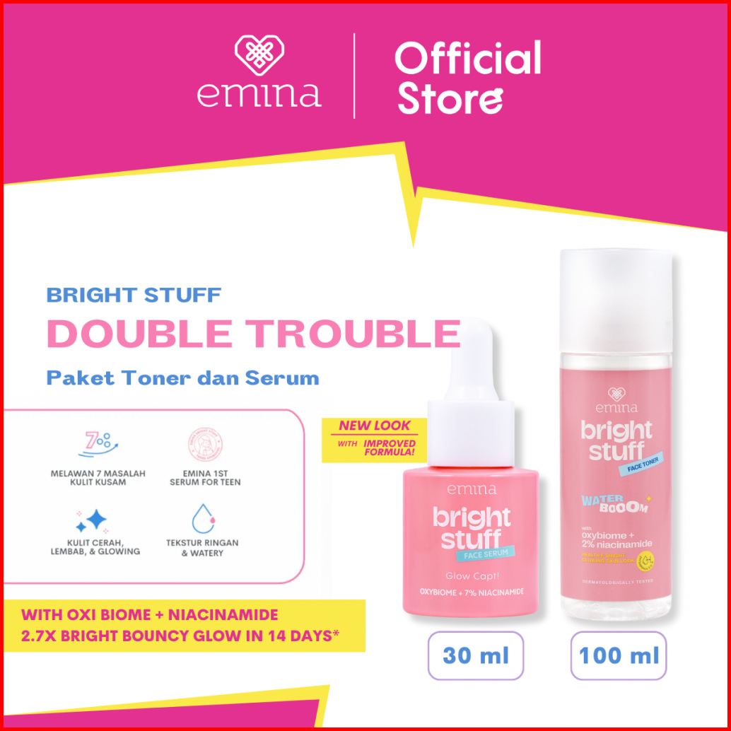 Emina Bright Stuff Double Trouble Package - Paket Perawatan Toner Dan Serum Mencerahkan