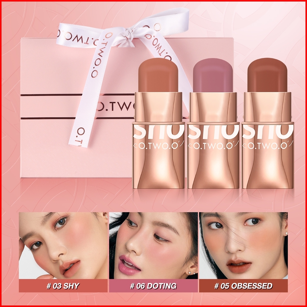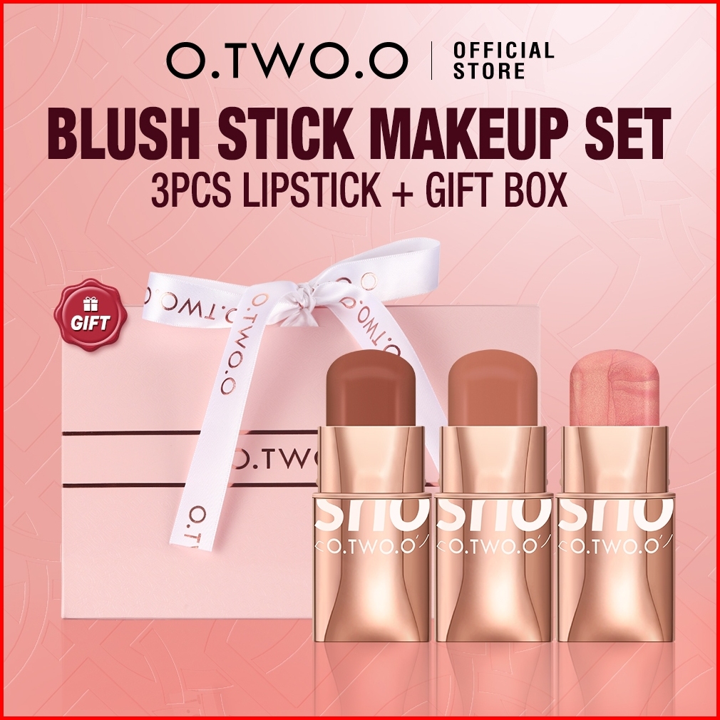 O.two.o 3pcs Blush Lip Cheek 6 Colors Beauty Cosmetics Set With Box