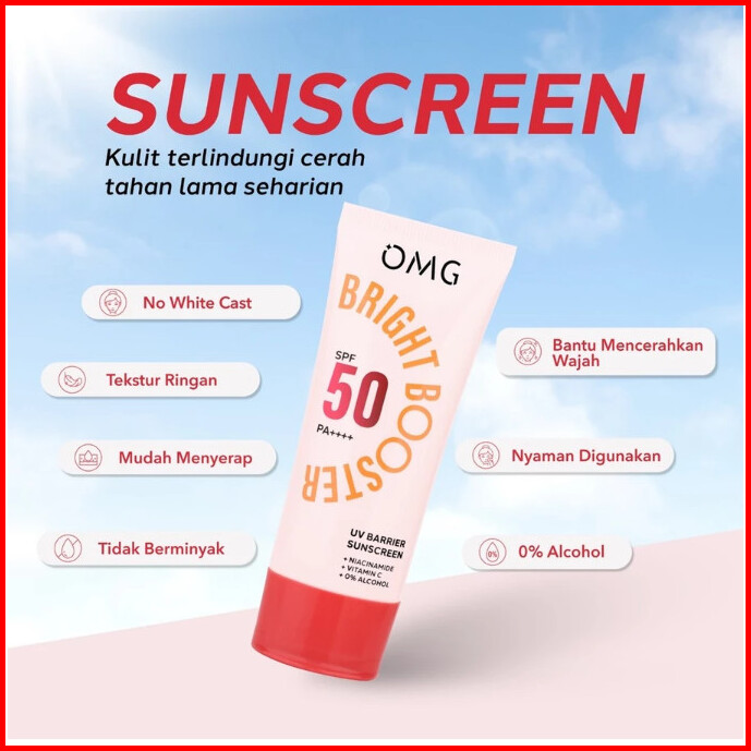 Omg Oh My Glow Uv Barrier Sunscreen Spf 50 Pa 60 Ml - Sunscreen - Mencerahkan Dengan Kandungan Serum Vit B3 C E - Cepat