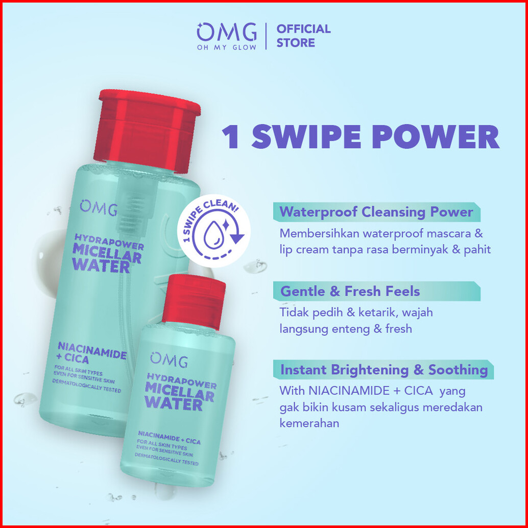 Flash Sale New Omg Oh My Glow Hydrapower Micellar Water With Niacinamide Cica - Mencerahkan Melembabkan Fresh Low Ph