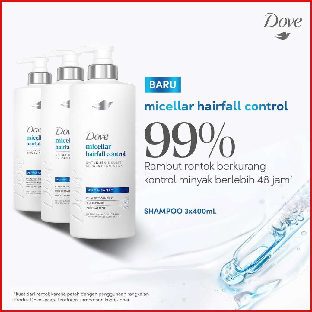 Dove Shampoo Micellar Hairfall Control 400ml X3 Sampo Perawatan Rambut Rontok Untuk Jenis Kulit Kepala Berminyak