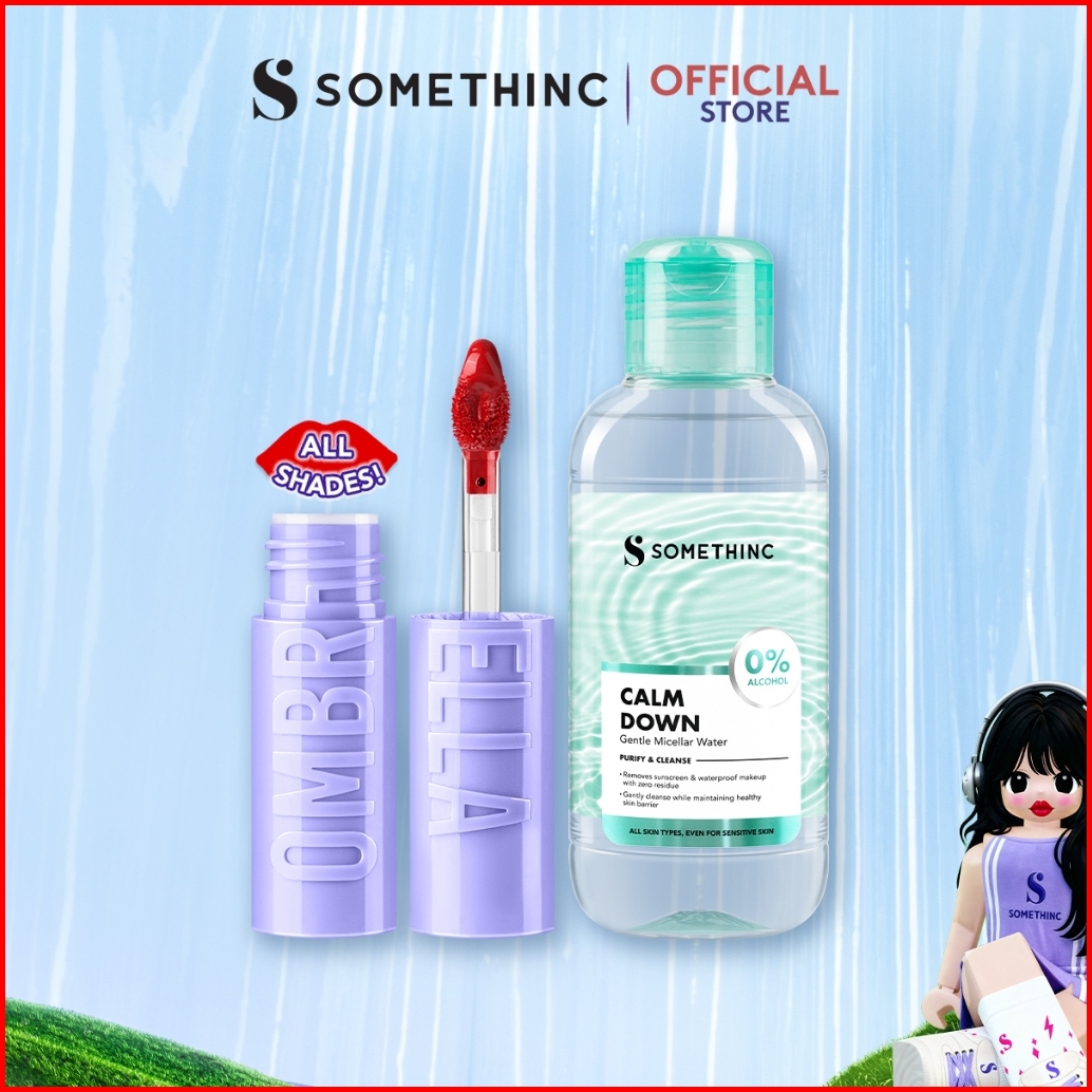 Somethinc 2 Pcs Best Makeup Skincare Collection Ombrella Hydra Juicy Lip Tint Low Ph Gentle Jelly Cleanser Calm Down Ski