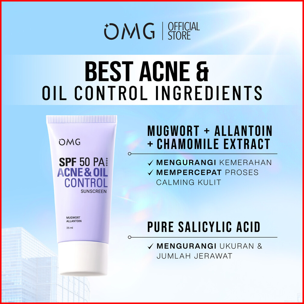 New Omg Acne Oil Control Uv Barrier Sunscreen Spf50 Pa I Mengandung Mugwort Allantoin Salicylic Acid - No Whitecast - Me