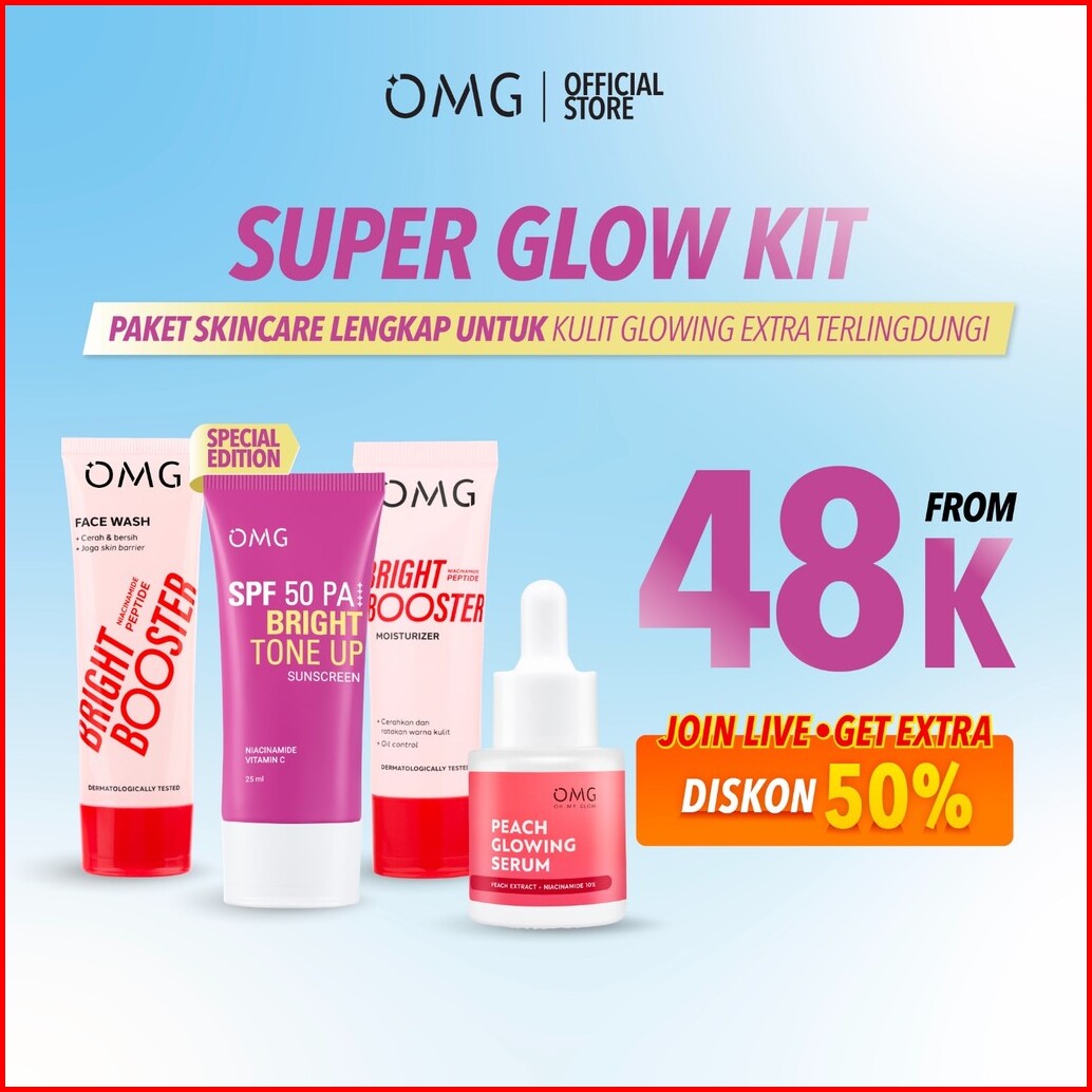 Special New Warehouse Omg Bright Booster Super Glow Kit Tone Up Face Wash Moist Cream Serum Sunscreen - Untuk Kulit Tamp
