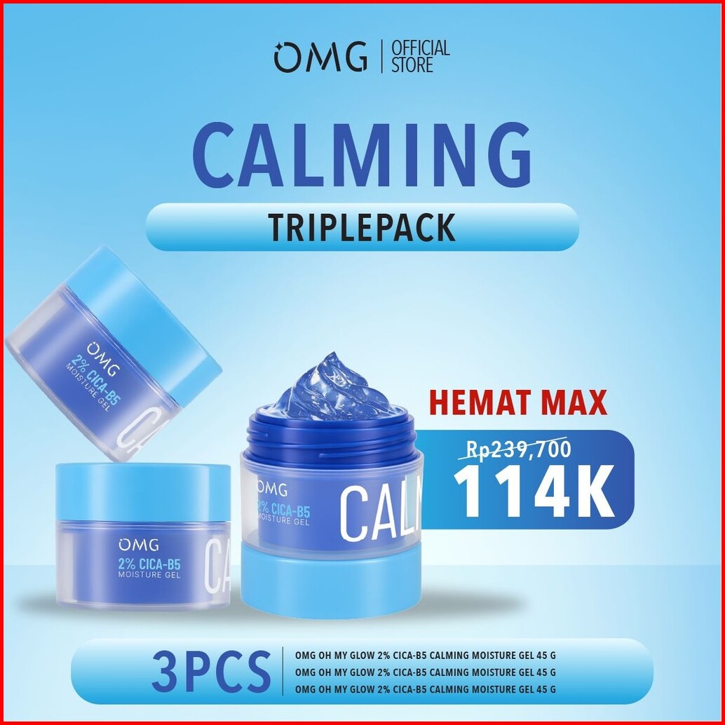 Triplepack Omg Oh My Glow Bright Barrier Calming Moisturizer Gel 45 G - Pelembab Wajah - Mencerahkan - Mengurangi Jerawa
