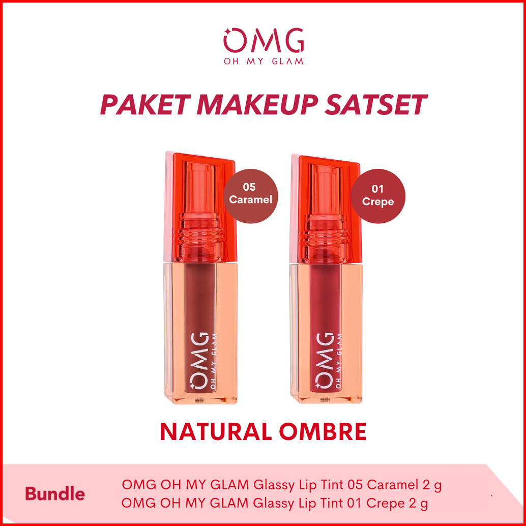 Omg Oh My Glam Paket Makeup Sat Set - Twin Pack Glassy Lip Tint 2g - Lip Tint Warna Intense Tahan 12 Jam Skincare Infuse