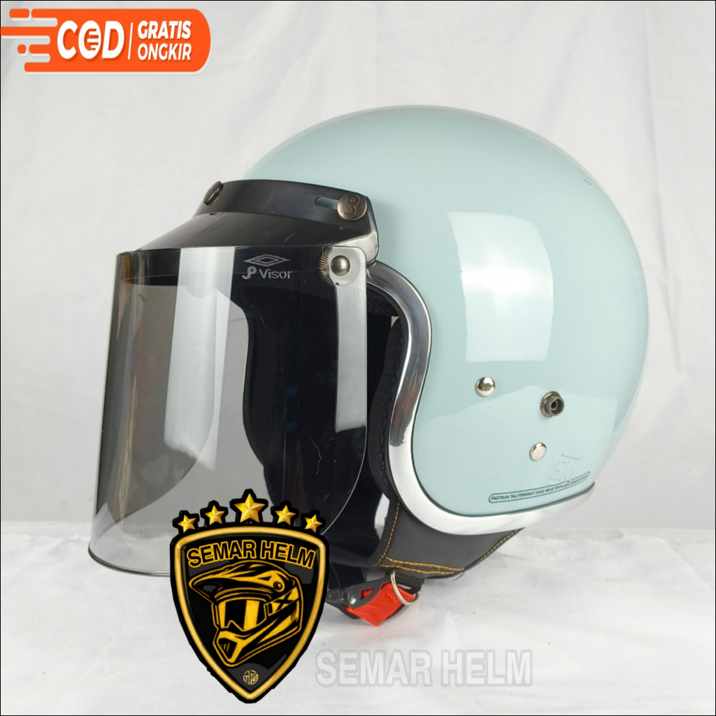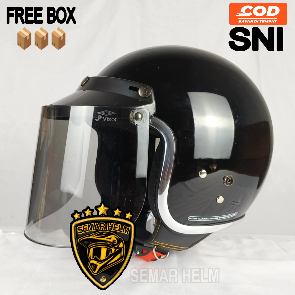 (FREE KACA) HELM BOGO WANITA DEWASA LIST CROM KACA DATAR HITAM - helm retro wanita pria SNI TERLARIS