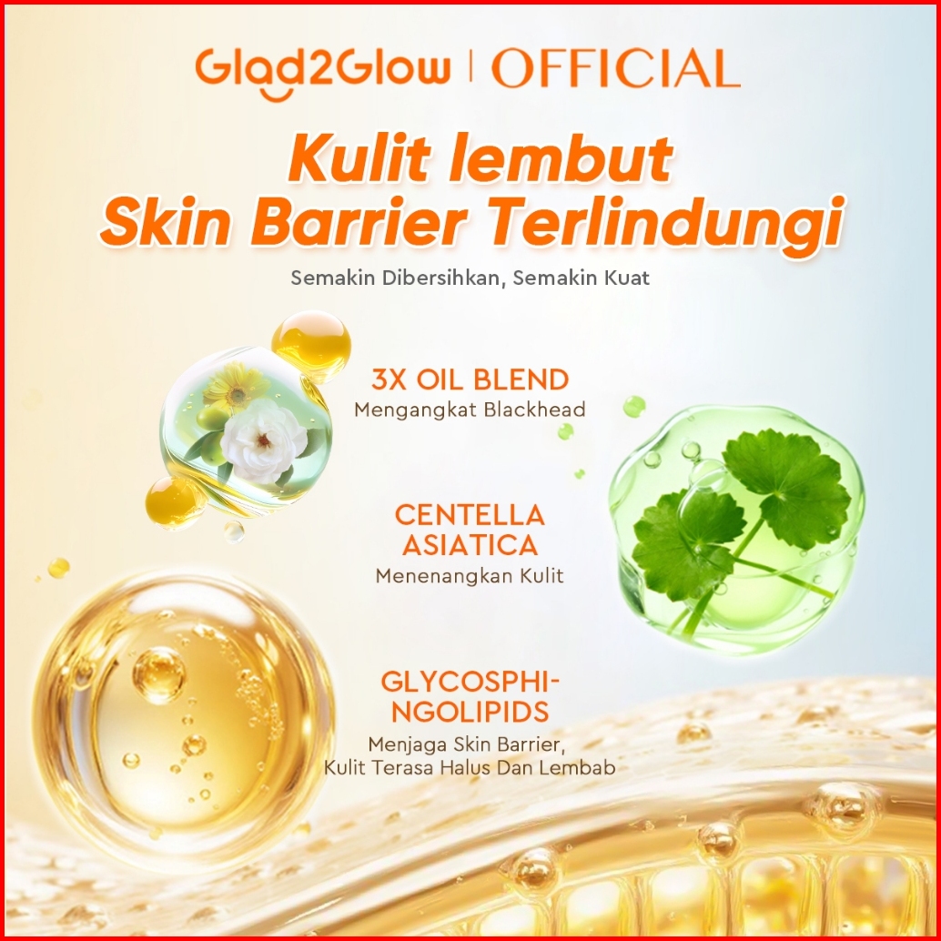 Glad2glow 2in1 Set Cleansing Oil Facial Wash - Centella Madagascar - Untuk Kulit Berjerawat Berminyak Sensitif Cerah G2g