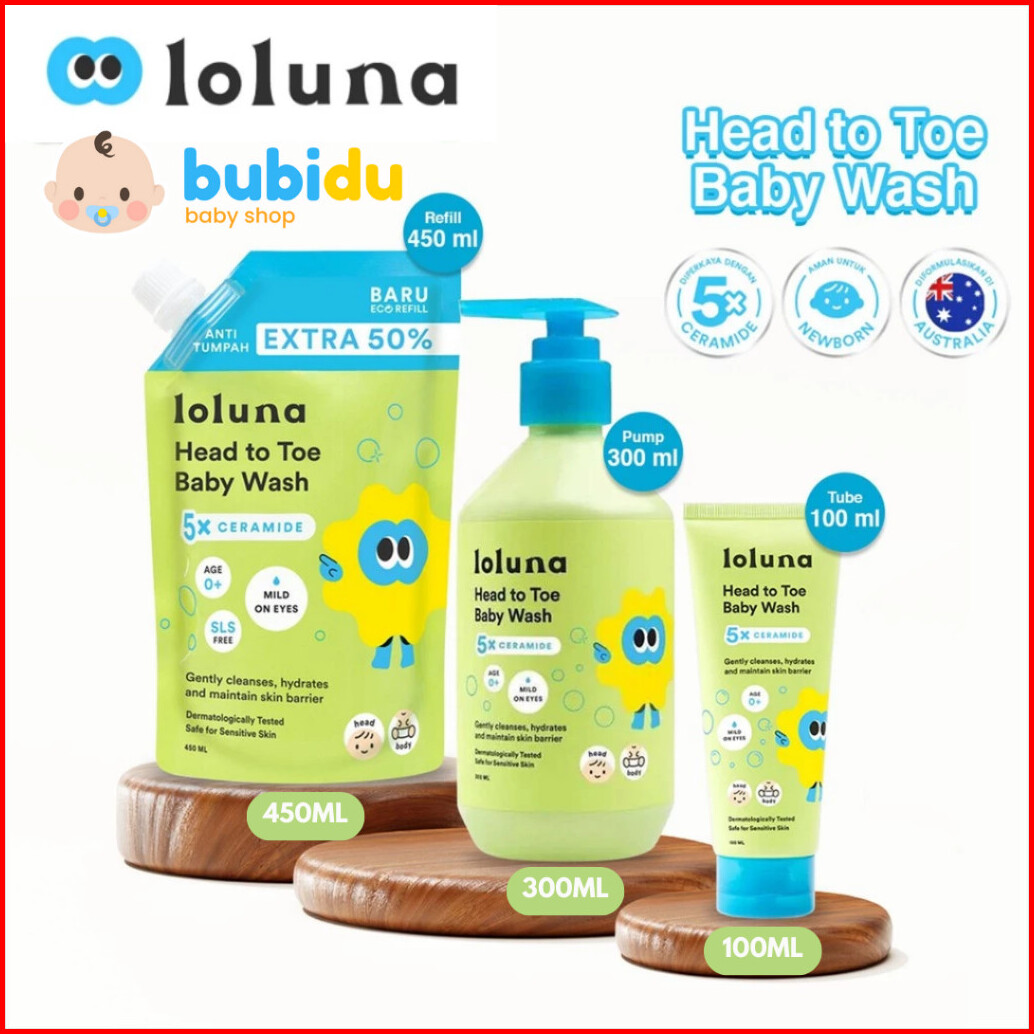 Loluna Head To Toe Wash 100ml Tube 300ml Botol 450ml Refill - Sabun Sampo Mandi Perawatan Kulit Bayi Dan Anak Sabun Untu