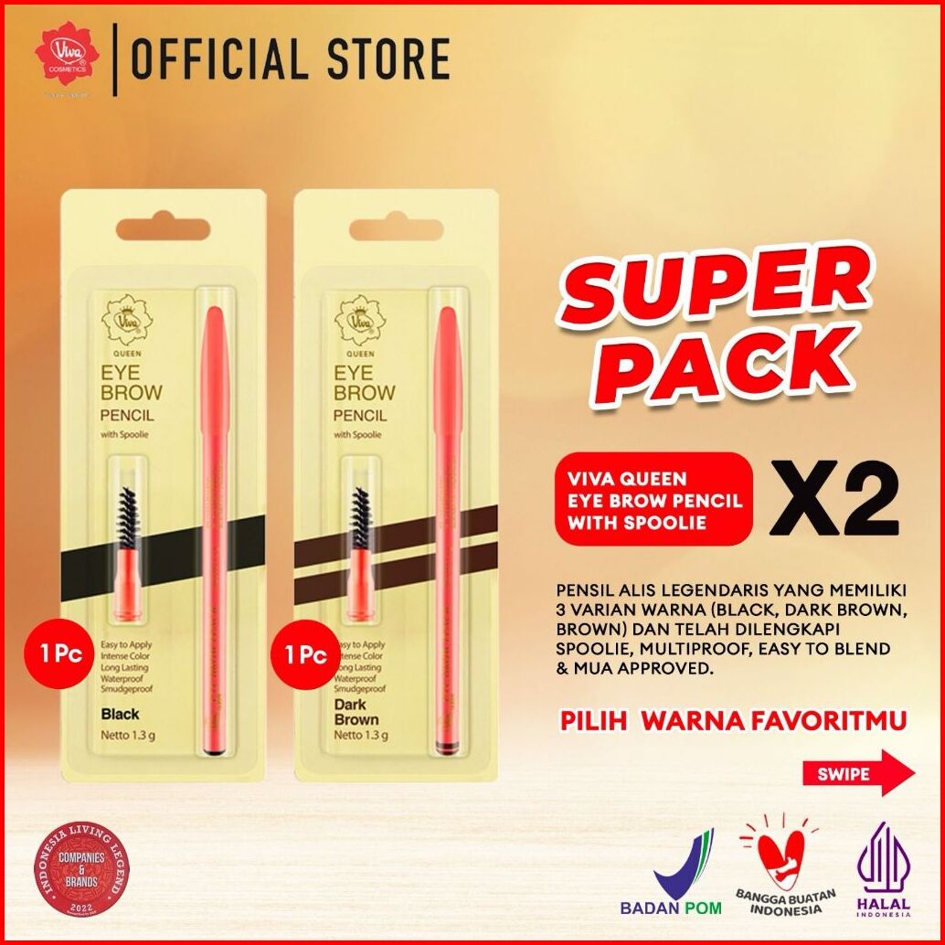 Super Pack Viva Queen Eye Brow Pencil Waterproof Smudgeproof Transferproof - Tersedia 3 Varian Warna