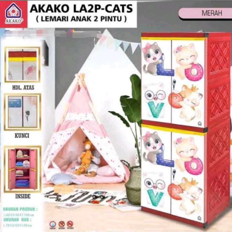 AKAKO - Lemari Pakaian Plastik Anak Baby Jumbo 2 Pintu Susun 4 Motif Printing LA2P