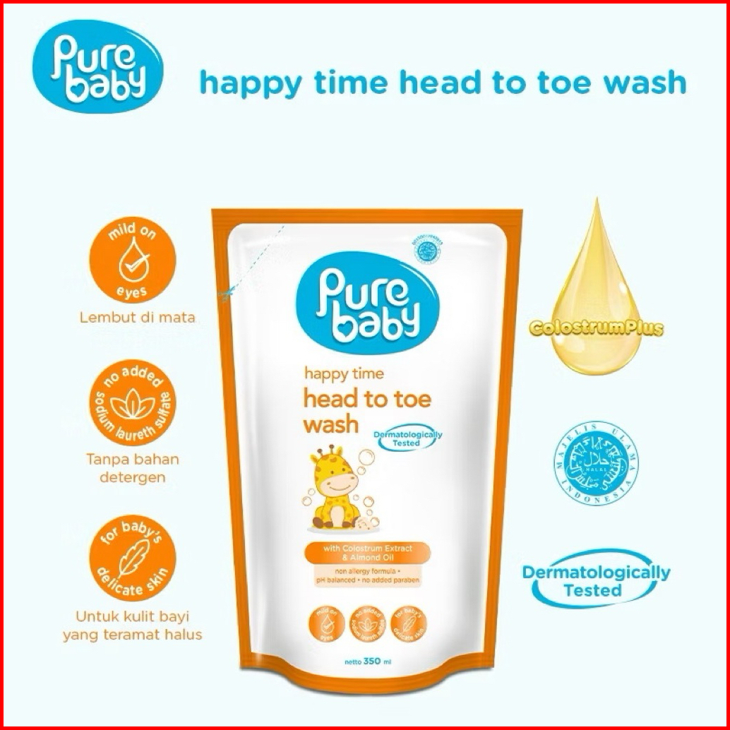 Pure Baby Happy Head Toe Wash Refill 350 Ml - Sabun Shampo 2 In 1 Dengan Bahan Alami