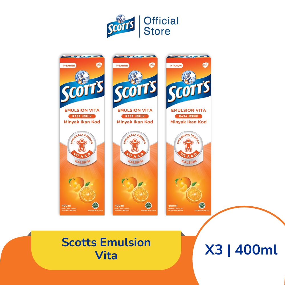 Scott's Vitamin dengan Omega 3, Vitamin A dan D + Kalsium Vita Rasa Jeruk 3x400ml [TRIPLEPACK]