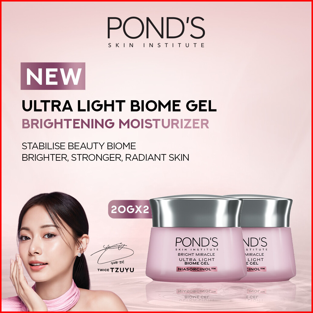 Ponds Bright Miracle Ultra Light Biome Gel - Brightening Moisturizer Gel 20gr Twinpack