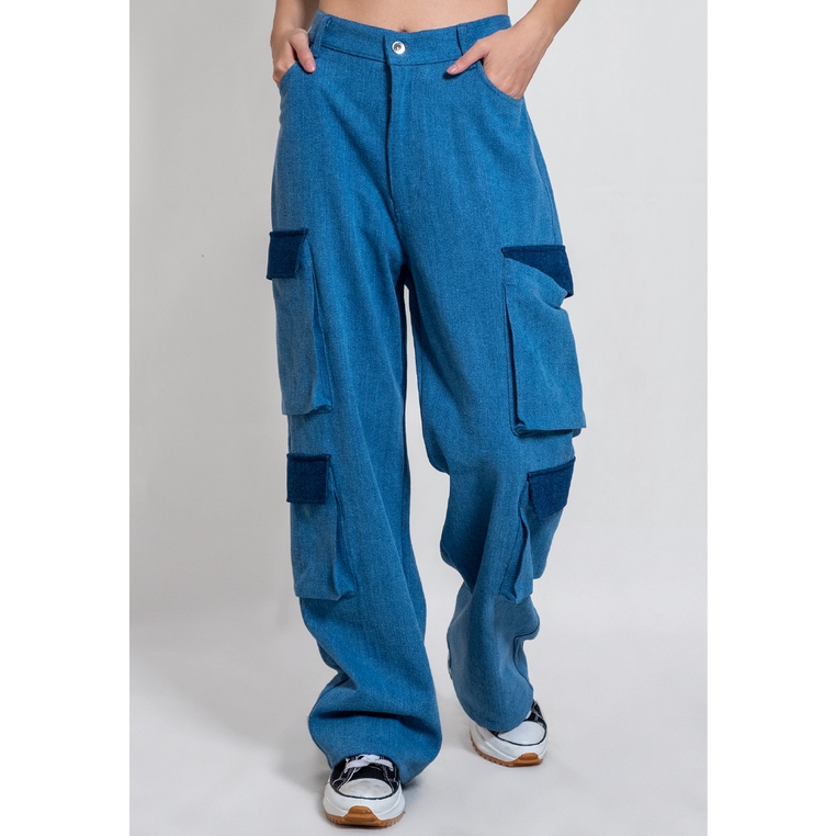 OCWA CJ FLARE CARGO DENIM MULTI BLUE