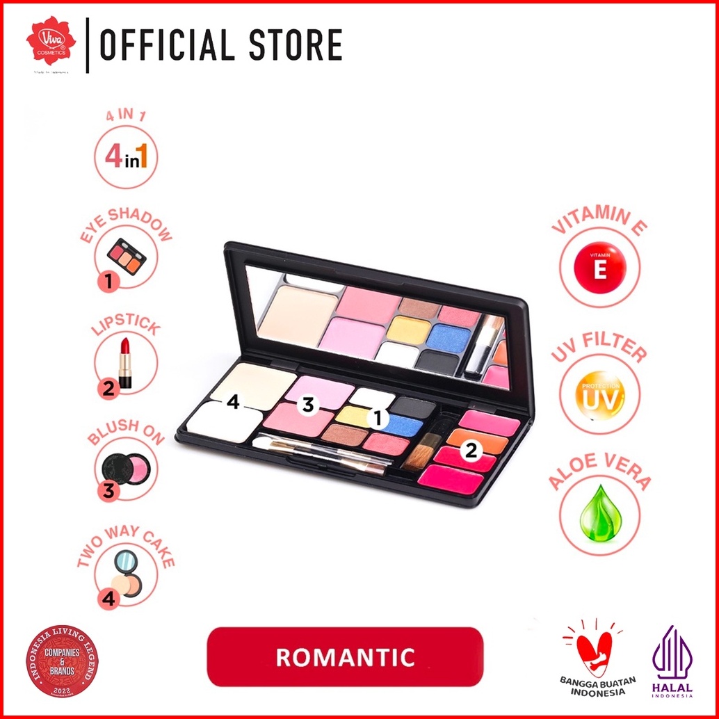 Viva Queen Make Up Kit Romantic - 4 In 1 Two Way Cake Blush On Eye Shadow Lipstick Tersedia 5 Koleksi Warna