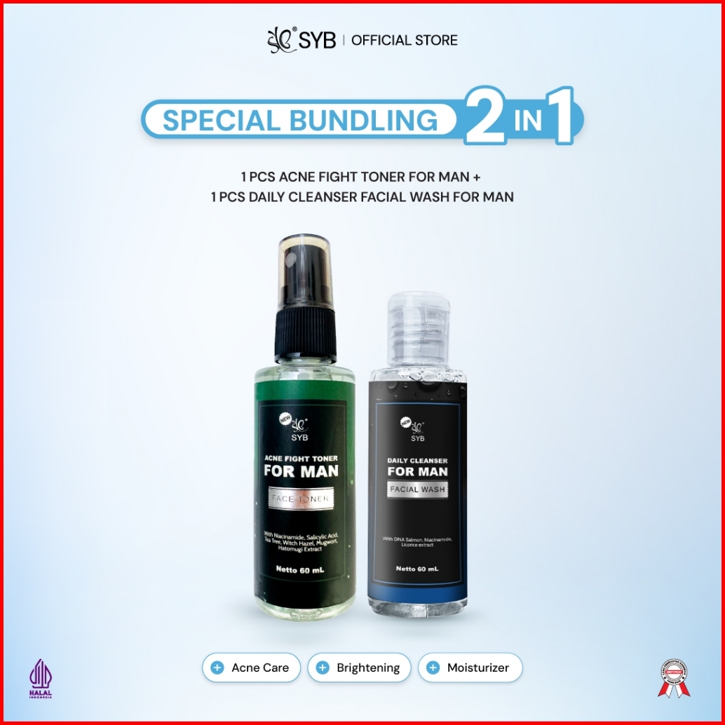 Clearance Sale - Special Bundling 2in1 For Man Acne Fight Toner Daily Cleancer Facial Wash