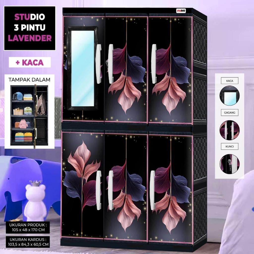 STUDIO - Lemari Pakaian 3 Pintu Jumbo Motif Printing Mirip VIP Akako Gantung + Kaca