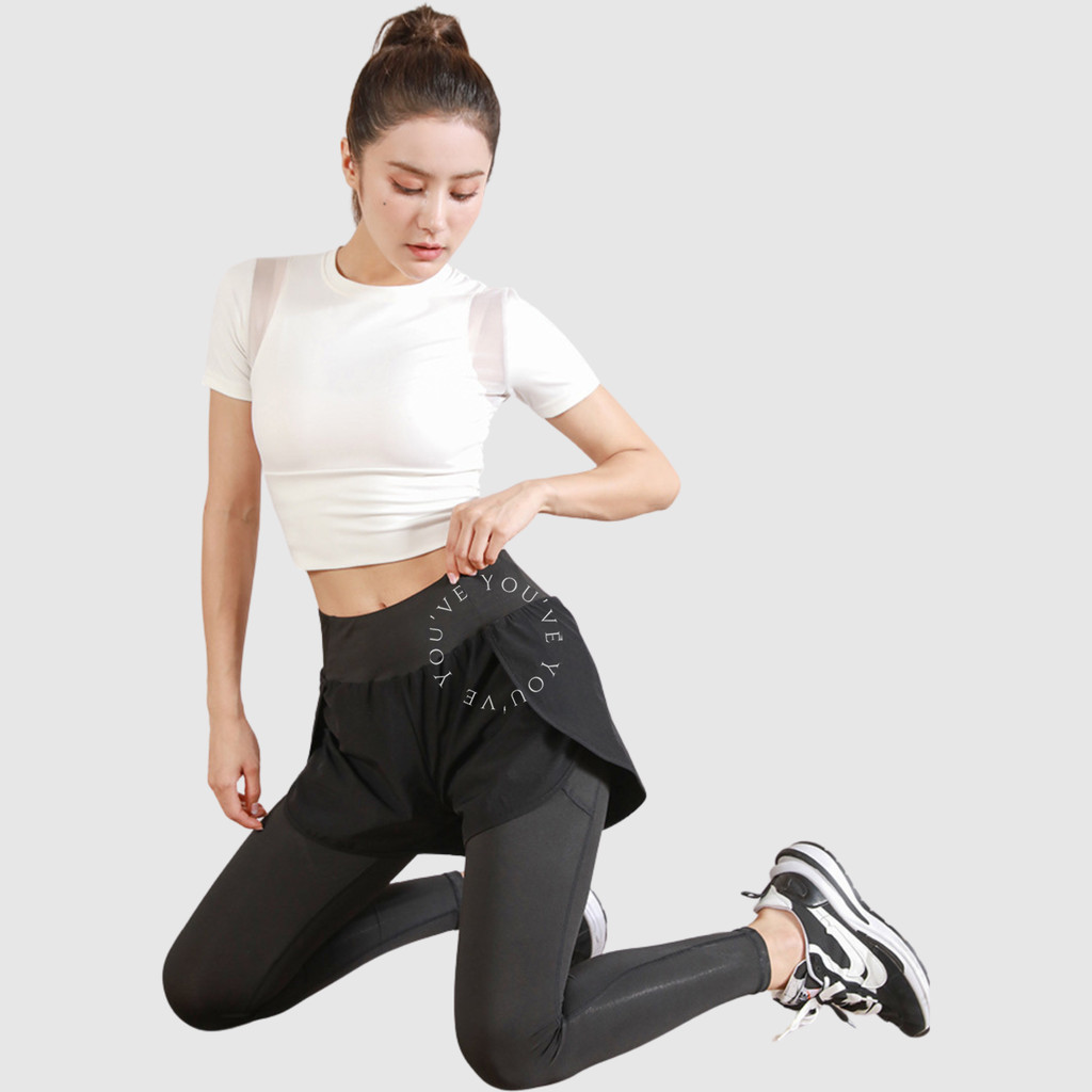 YouHave ( You’ve ) Celana Yoga Legging Celana Olahraga 2 in 1 Wanita High Waist Wanita Celana Hijab High Waist Polos Yog