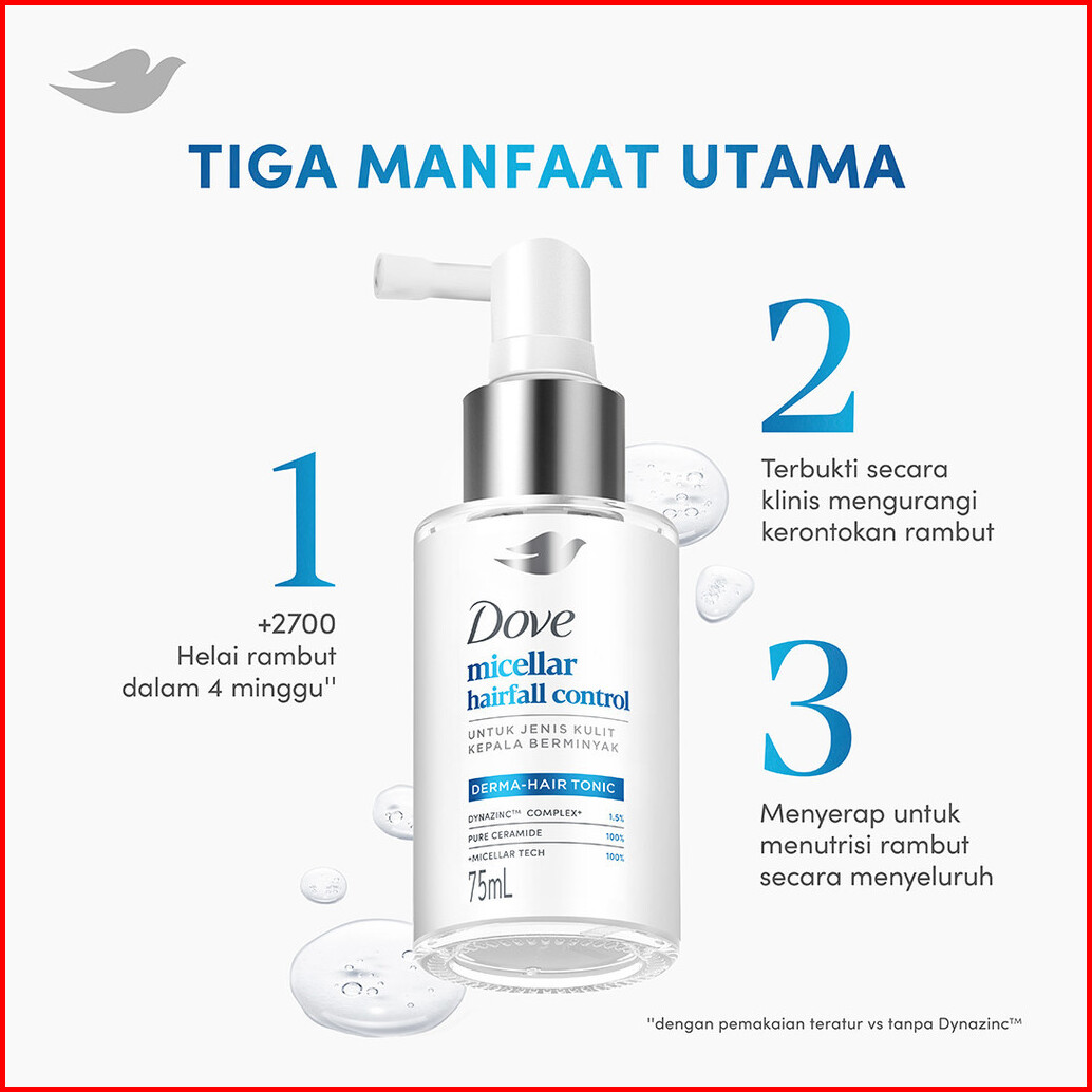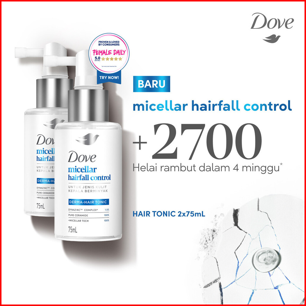 Dove Hair Tonic Micellar Hairfall Control 75ml X2 Tonic Perawatan Rambut Rontok Untuk Jenis Kulit Kepala Berminyak Tonic