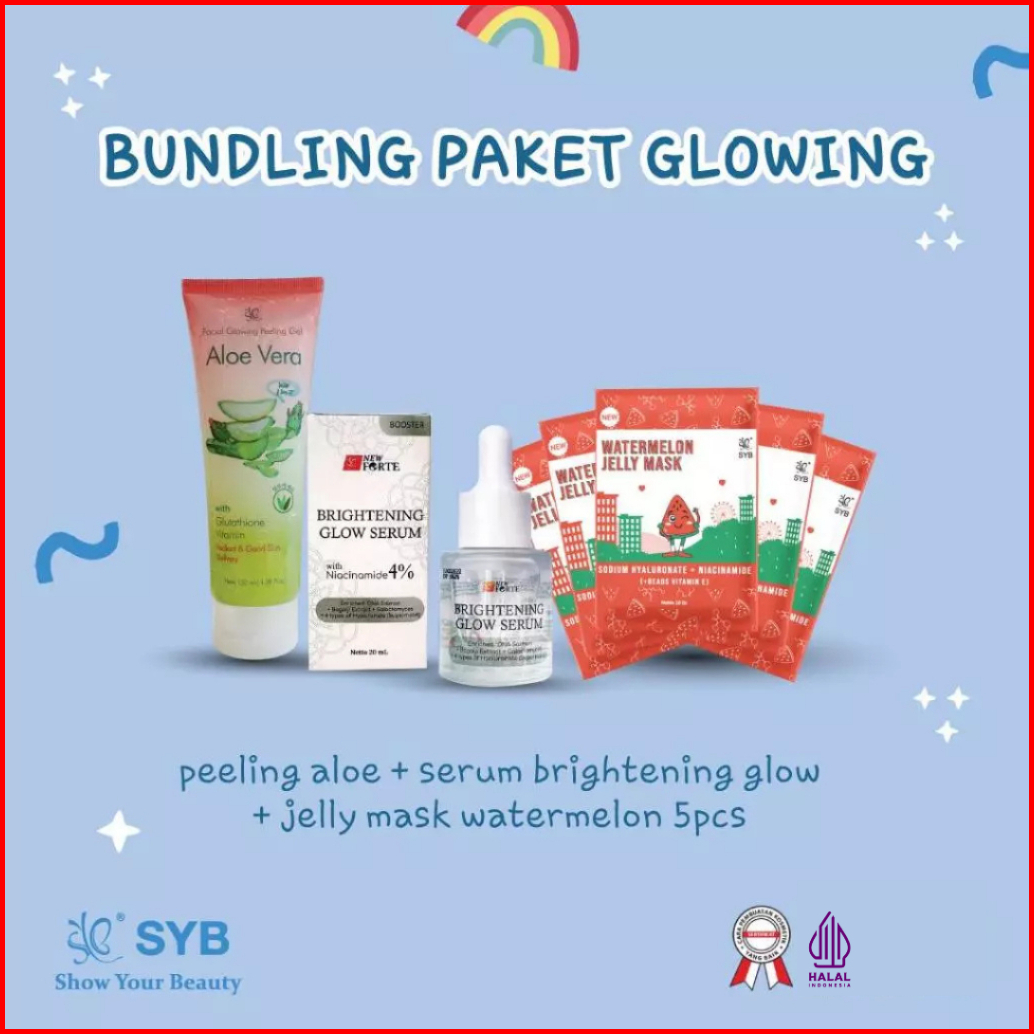 Syb Paket Bundling Glowing Peeling Gel Aloe Vera Brightening Glow Serum 5 Jelly Mask Watermelon