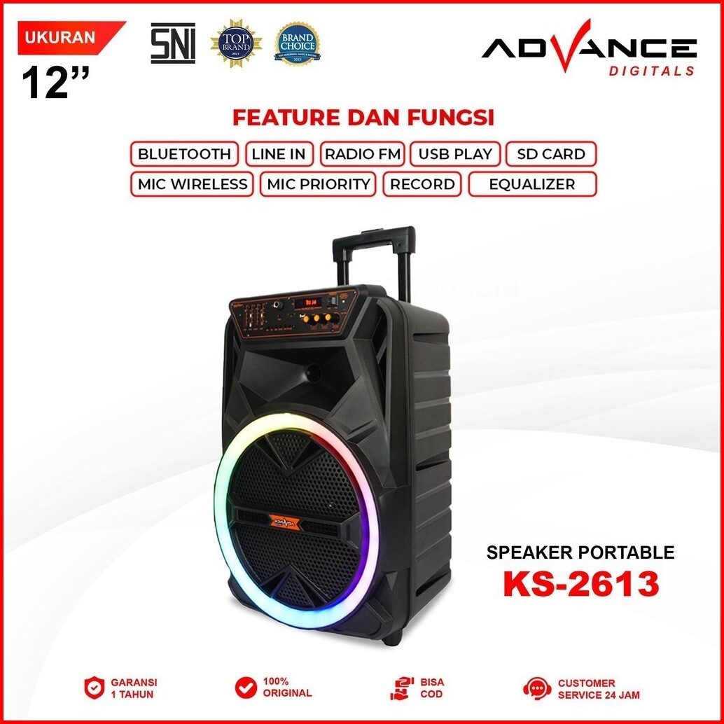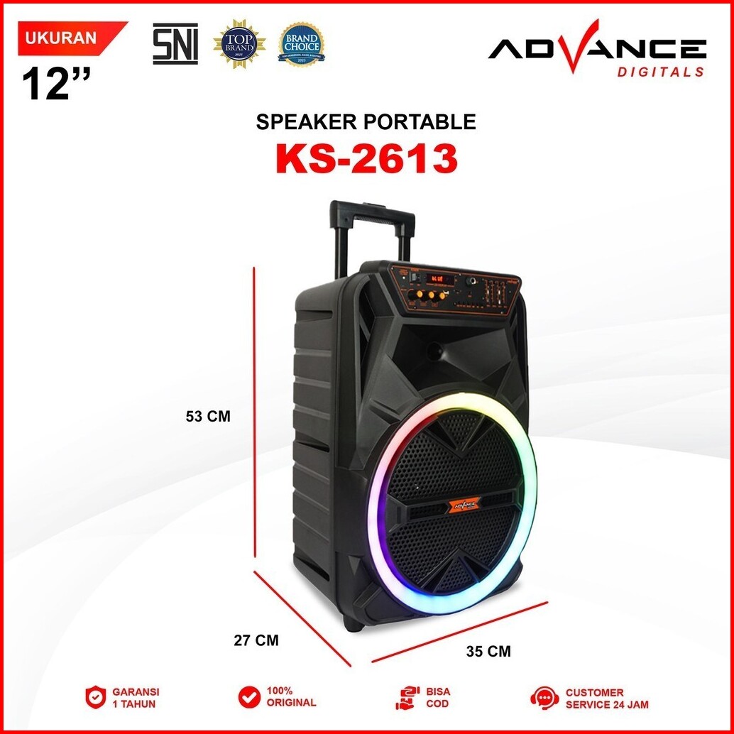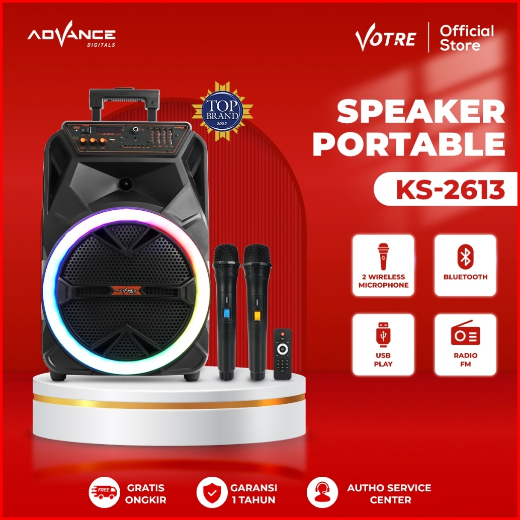 Advance Ks-2613 Speaker 12 Portable Free 2 Mic Wireless Karaoke Garansi Resmi 1 Tahun
