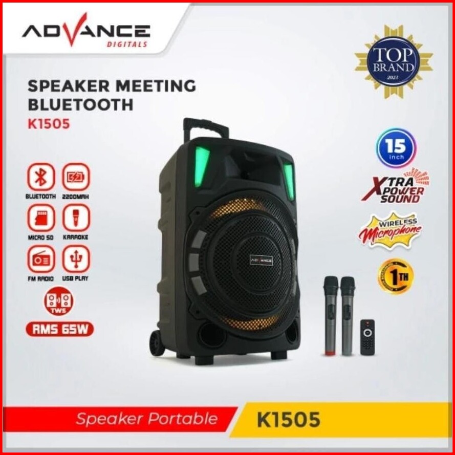 Advance K-1505 Speaker Bluetooth Portbale 15 Dilengkapi 2 Mic Wireless Garansi 1 Tahun Baterai Awet Ber Jam Jam