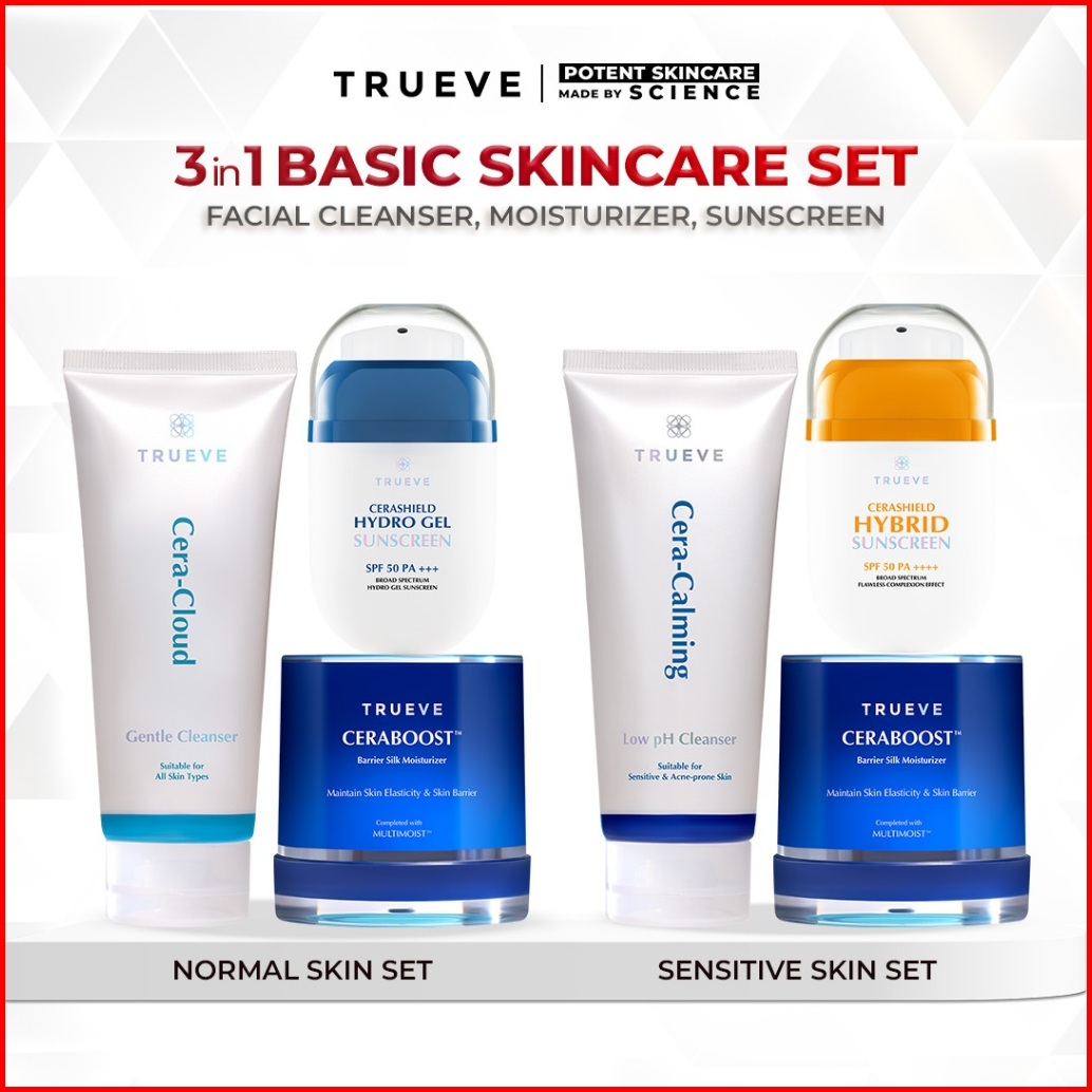 Basic Skincare - 3 Pcs Trueve Basic Skincare Set Facial Cleanser Moisturizer Gel Sunscreen