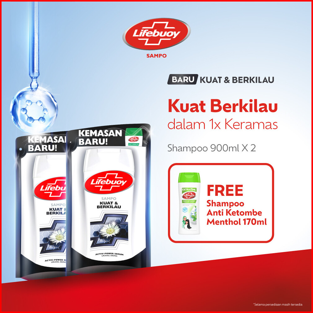 Lifebuoy Shampoo Kuat Berkilau Strong Shiny Lawan Kuman Penyebab Masalah Rambut Rambut Kusam 900ml X2