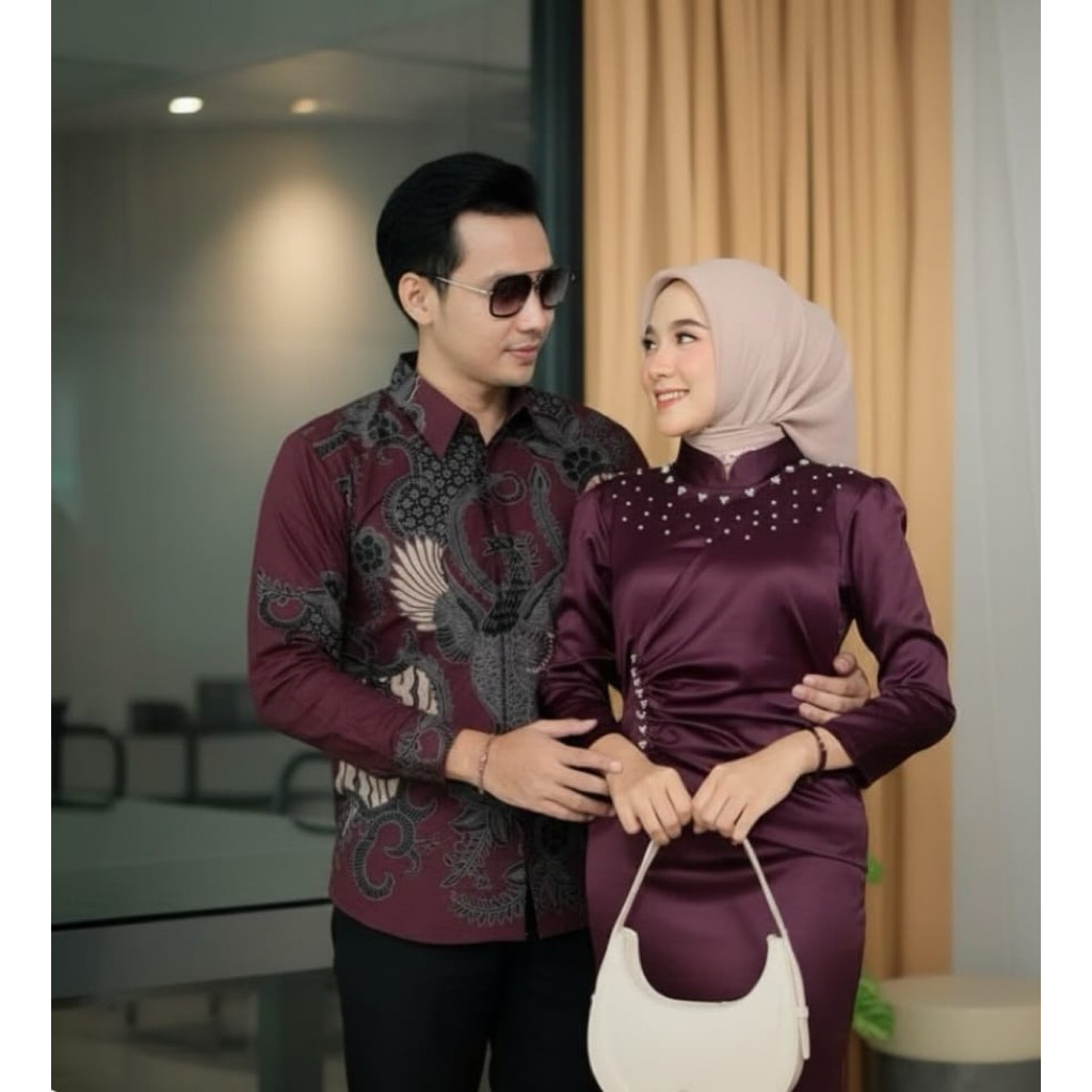 Set Couple Vina Dress Kemeja Batik Set Pasangan Kondangan Kekinian Termurah Paket Couple Keluarga