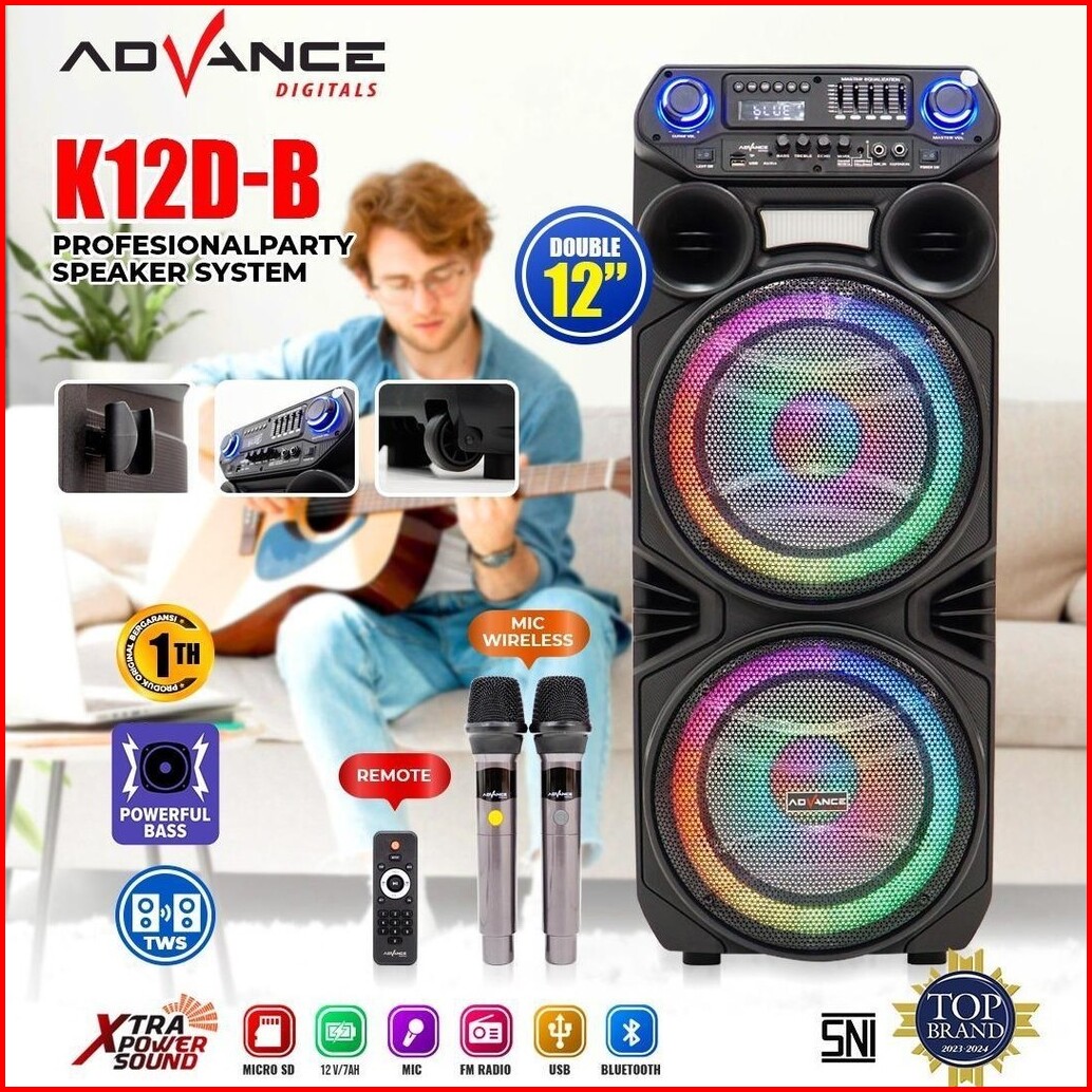 Advance Speaker K12d-b Professional Battery System 12 Double 2 Mic Wireless Input Gitar Baterai 7000 Mah Garansi 1 Tahun