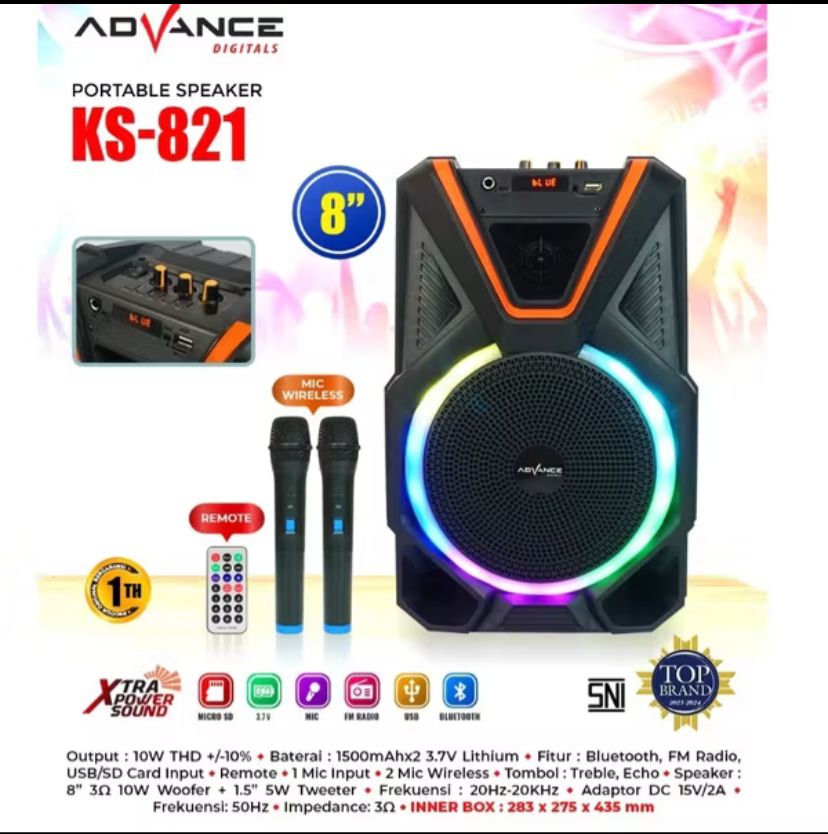 Speaker Bluetooth Portable ADVANCE KS-821 8 Inch 2 Mic