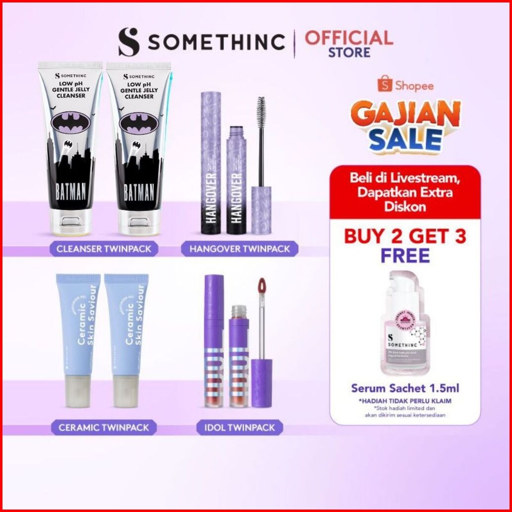 Somethinc 2 Pcs Special Twinpack Low Ph Gentle Jelly Cleanser Ceramic Moisturizer Hangover Mascara - Free Sample Sachet