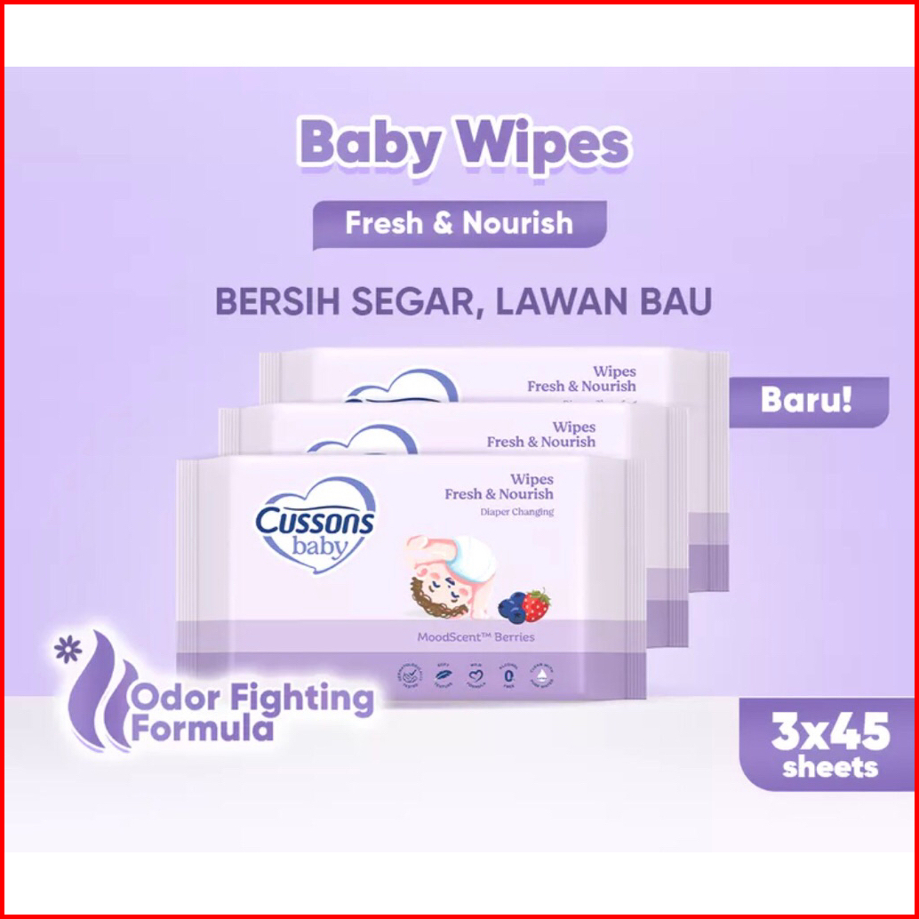 Cussons Baby Wipes Fresh Nourish - Tisu Basah Bayi - Ganti Popok 45 S X 3