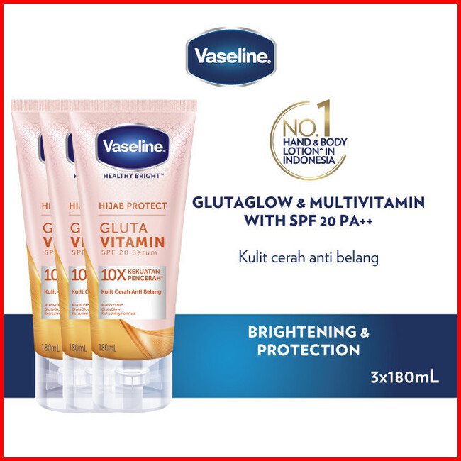 Vaseline Hijab Protect Gluta Vitamin Spf 20 Body Serum With Refreshing Formula 180ml X3
