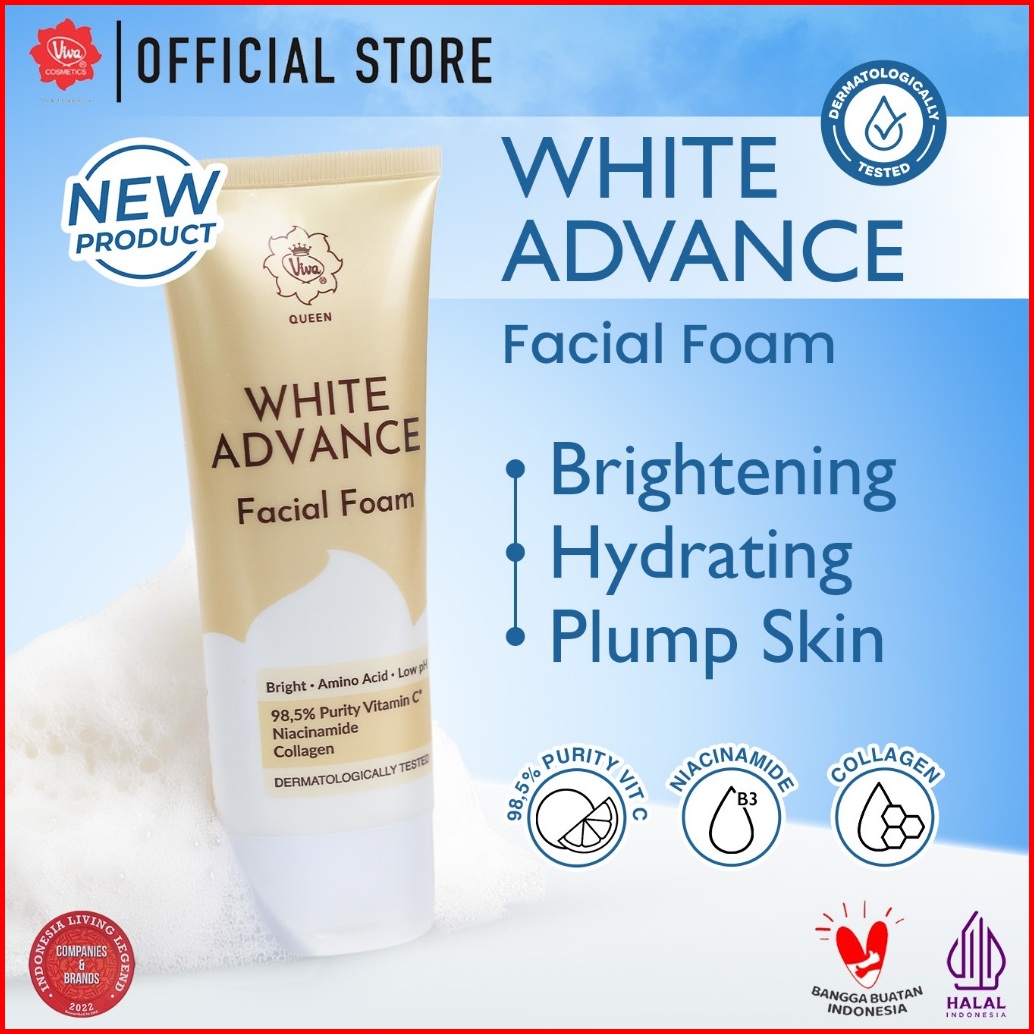 New Viva Queen White Advance Facial Foam With 98 5 Purify Vit.c Niacinamide Collagen For Cleansing Brightening Bouncy Yo