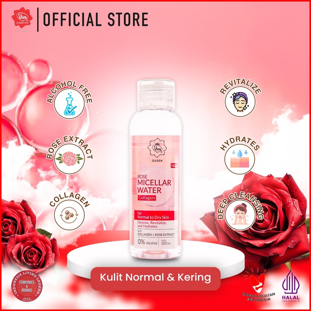 Viva Queen Micellar Rose Water With Rose Extract Collagen No Perfume Alcohol Free - Daily Cleanser Make Up Remover - 100