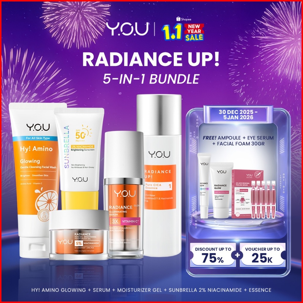 You 5in1 Paket Skincare Set 5pcs Radiance Glow Radiance Up Acneplus Radiance Barrier Retinol Sunbrella