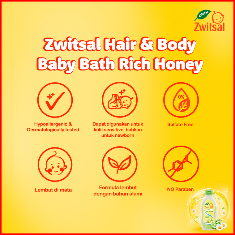 Zwitsal Baby Bath Hair Body - Milky Honey 300 Ml