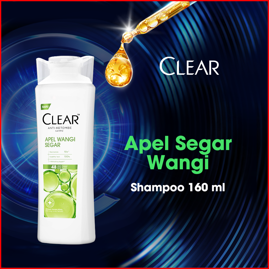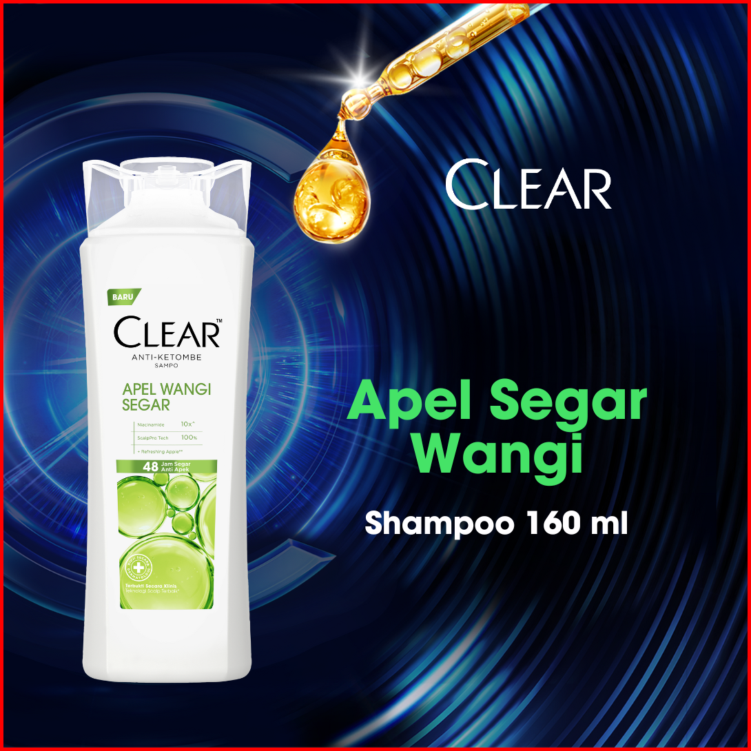 Clear Shampoo Anti Ketombe Apel Wangi Segar Kesegaran Tahan Lama 48 Jam Dan Lawan Apek Dengan 10x Super Vitamin - 160 Ml