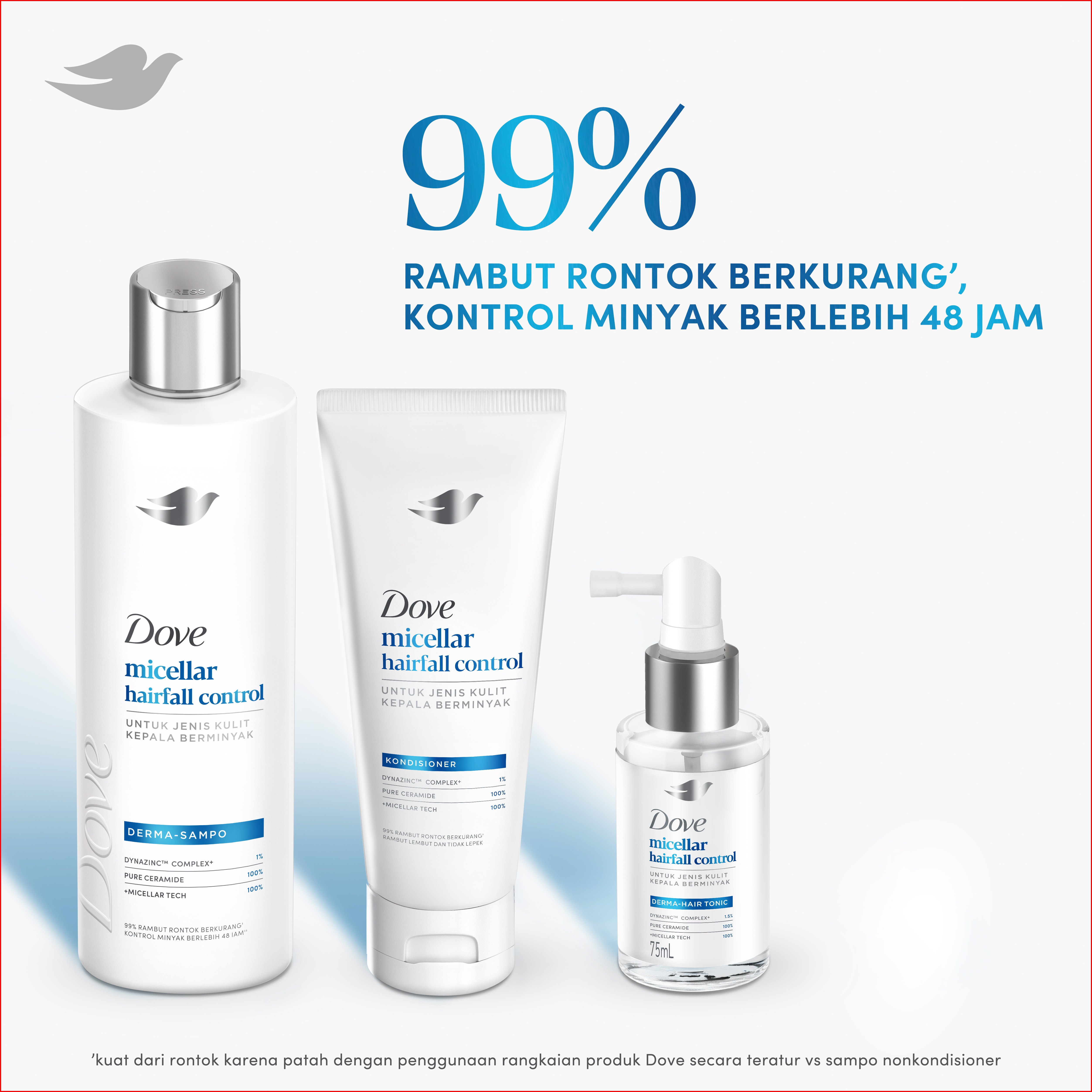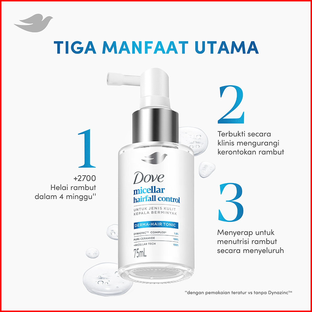 Dove Hair Tonic Micellar Hairfall Control 75ml Tonic Perawatan Rambut Rontok Untuk Jenis Kulit Kepala Berminyak Tonic Ha
